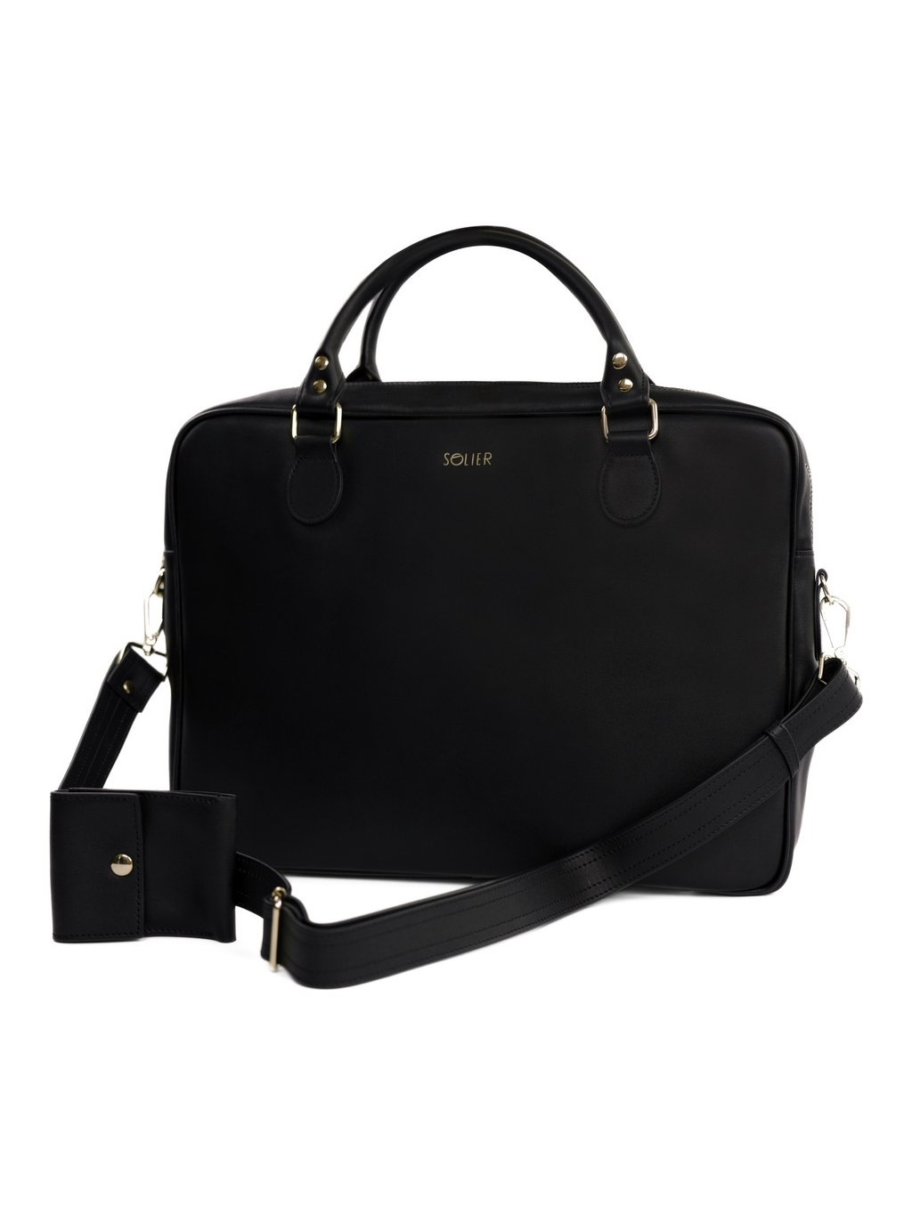 Solier fekete női bőr laptop táska