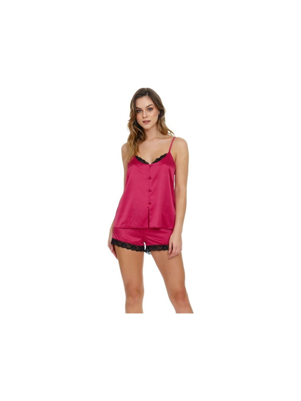 Sötét rózsaszín elegáns könnyű pizsama csipkével