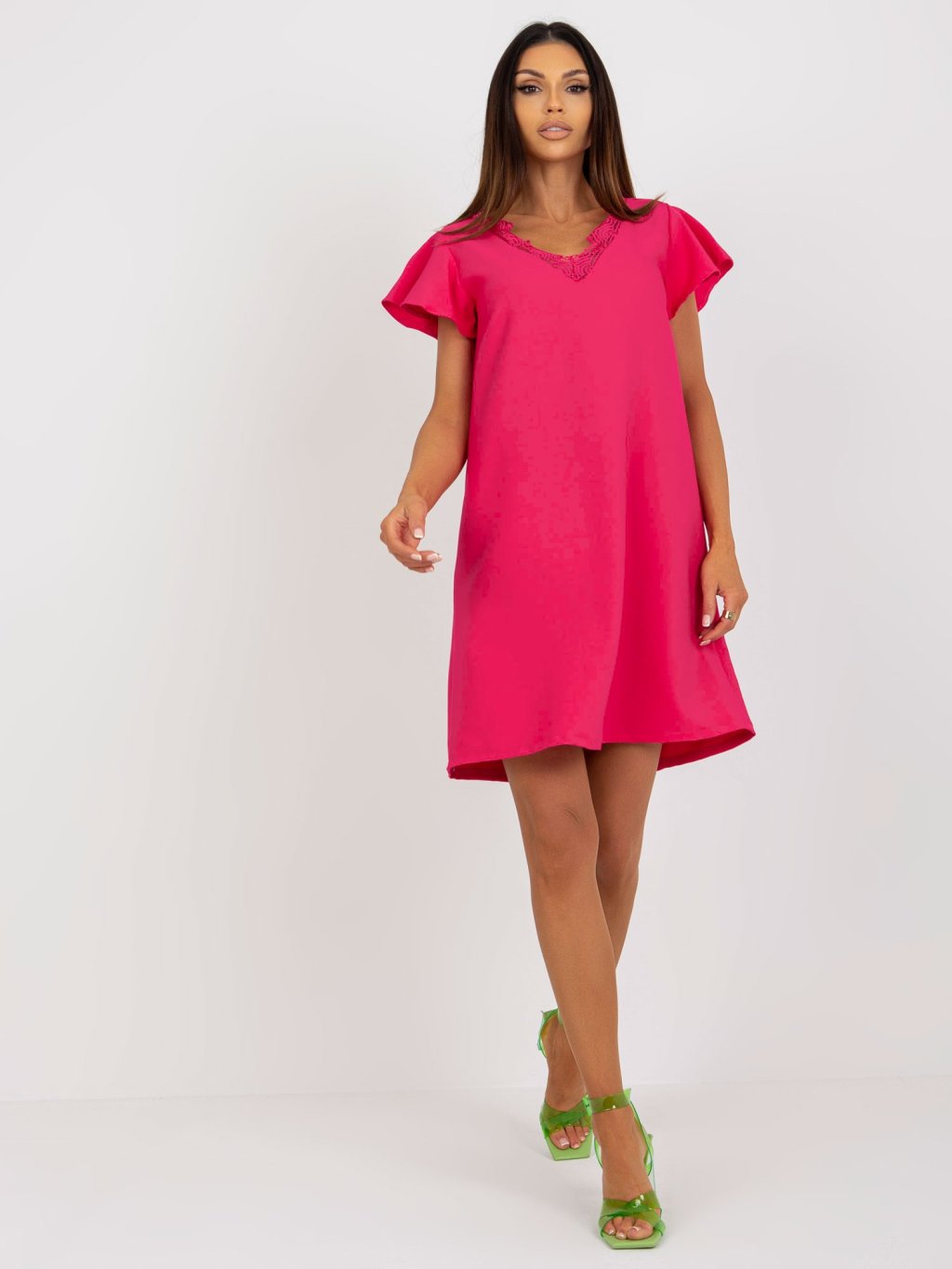 Sötét rózsaszín koktél elegáns mini ruha csipkével