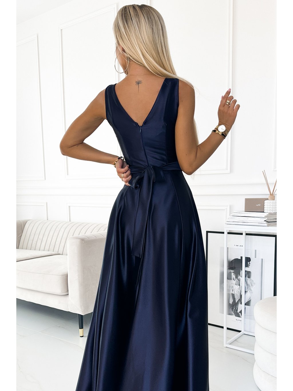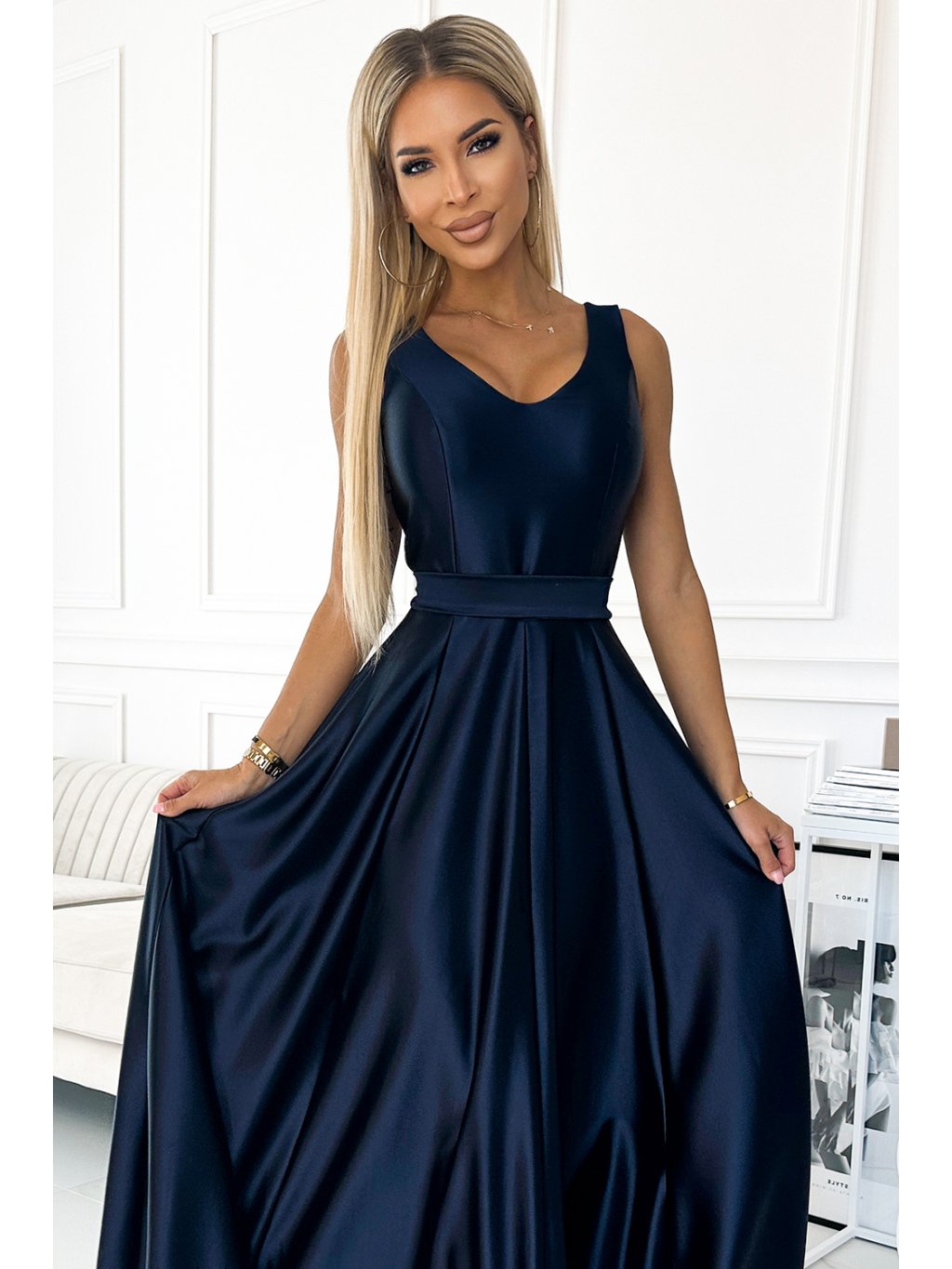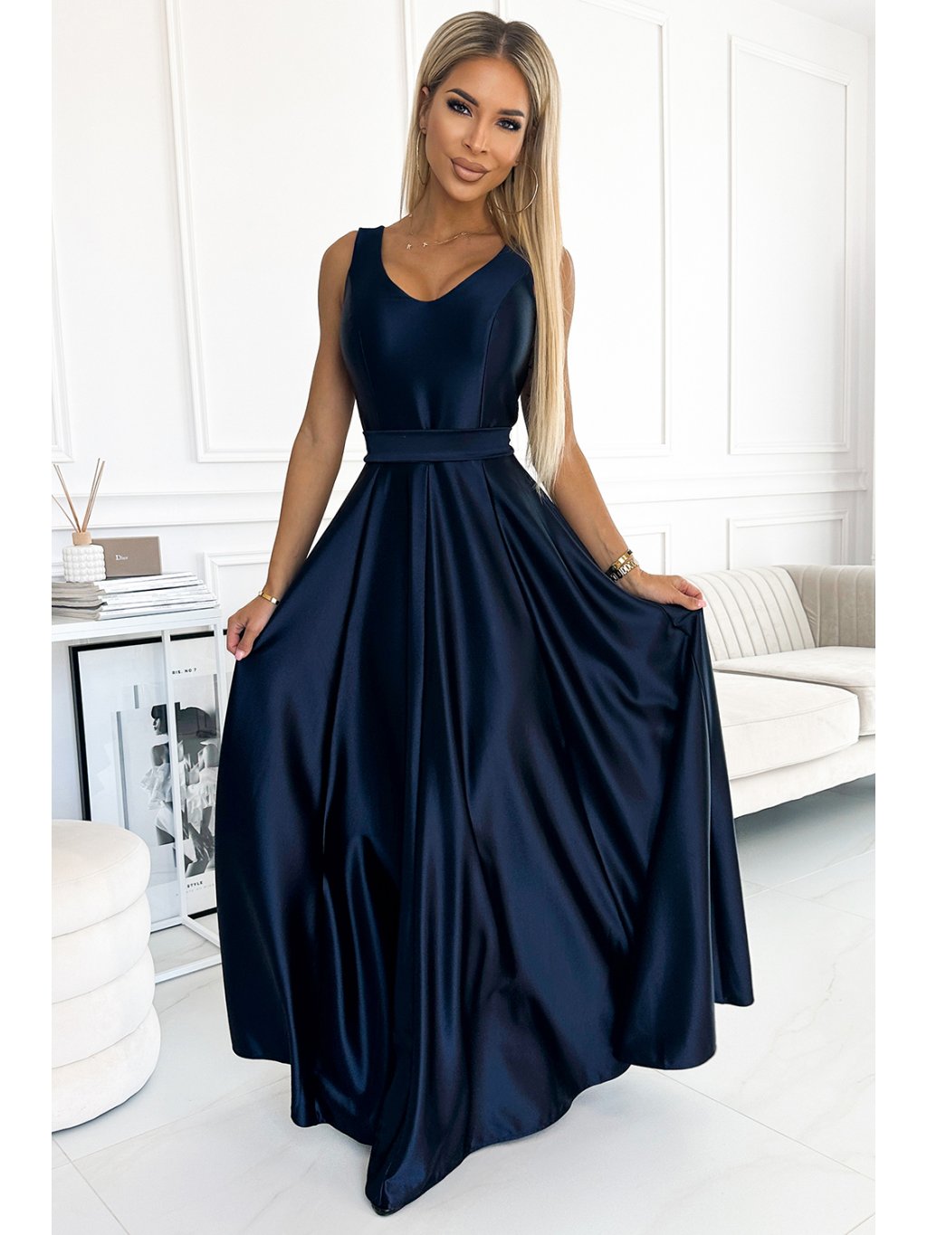Sötétkék alkalmi maxi ruha CINDY