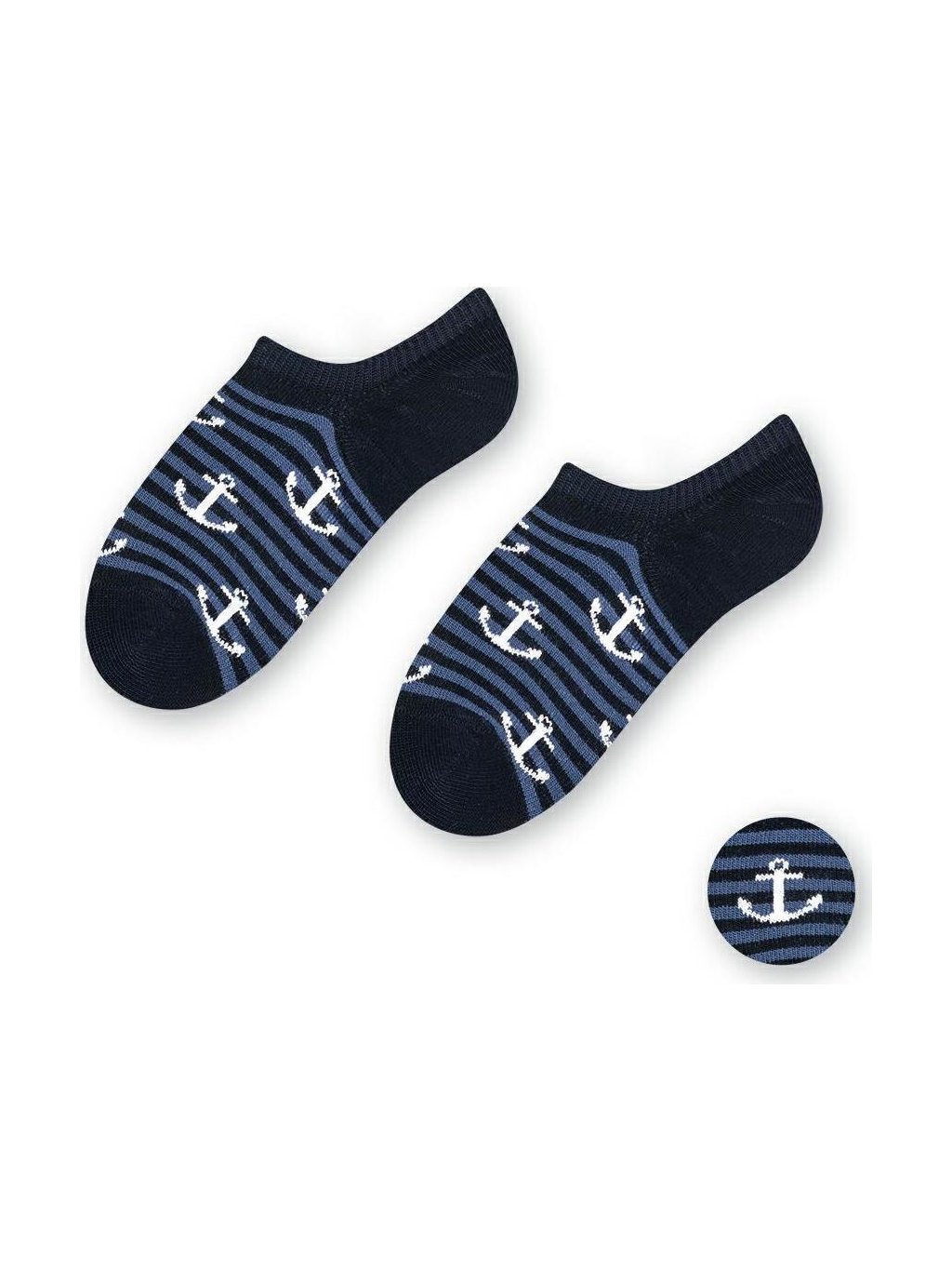 Sötétkék bambusz gyerekzokni csíkokkal és horgonyokkal Art.152