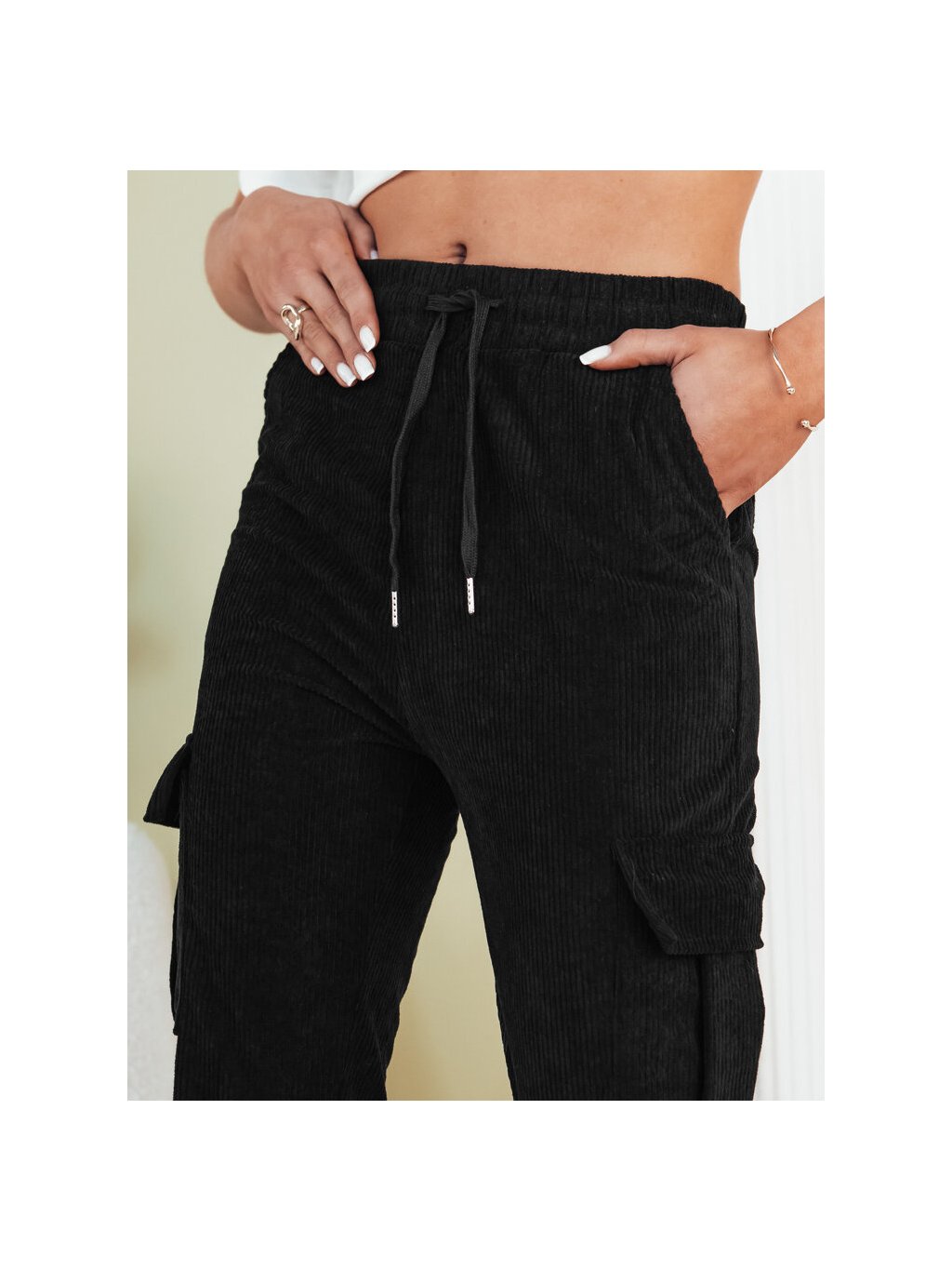 Sötétkék bordázott melegítőnadrág zsebekkel FLAYON