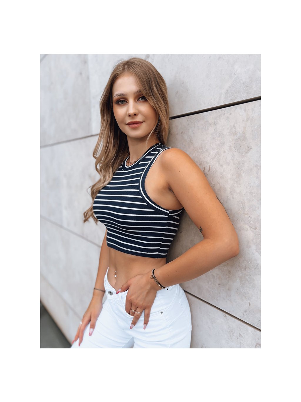 Sötétkék csíkos crop top STELLA MAE