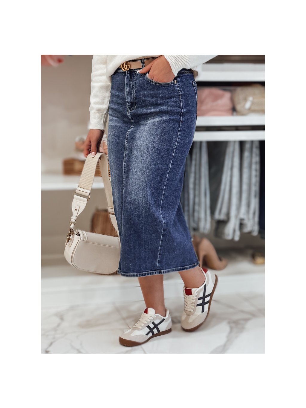 Sötétkék farmer midi szoknya hasítékkal MERITTA