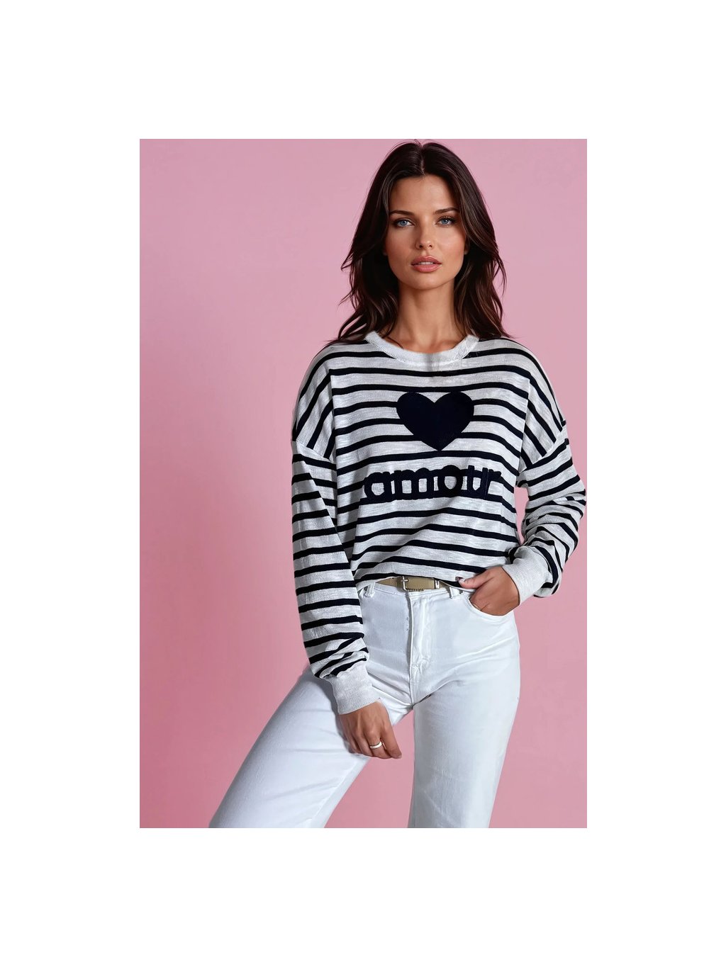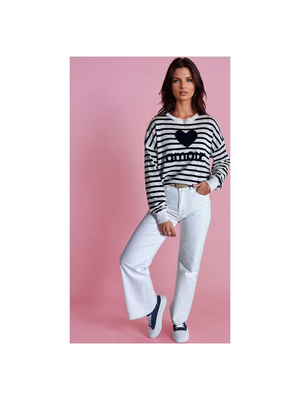 Sötétkék-fehér csíkos szív mintás pulóver NOVES