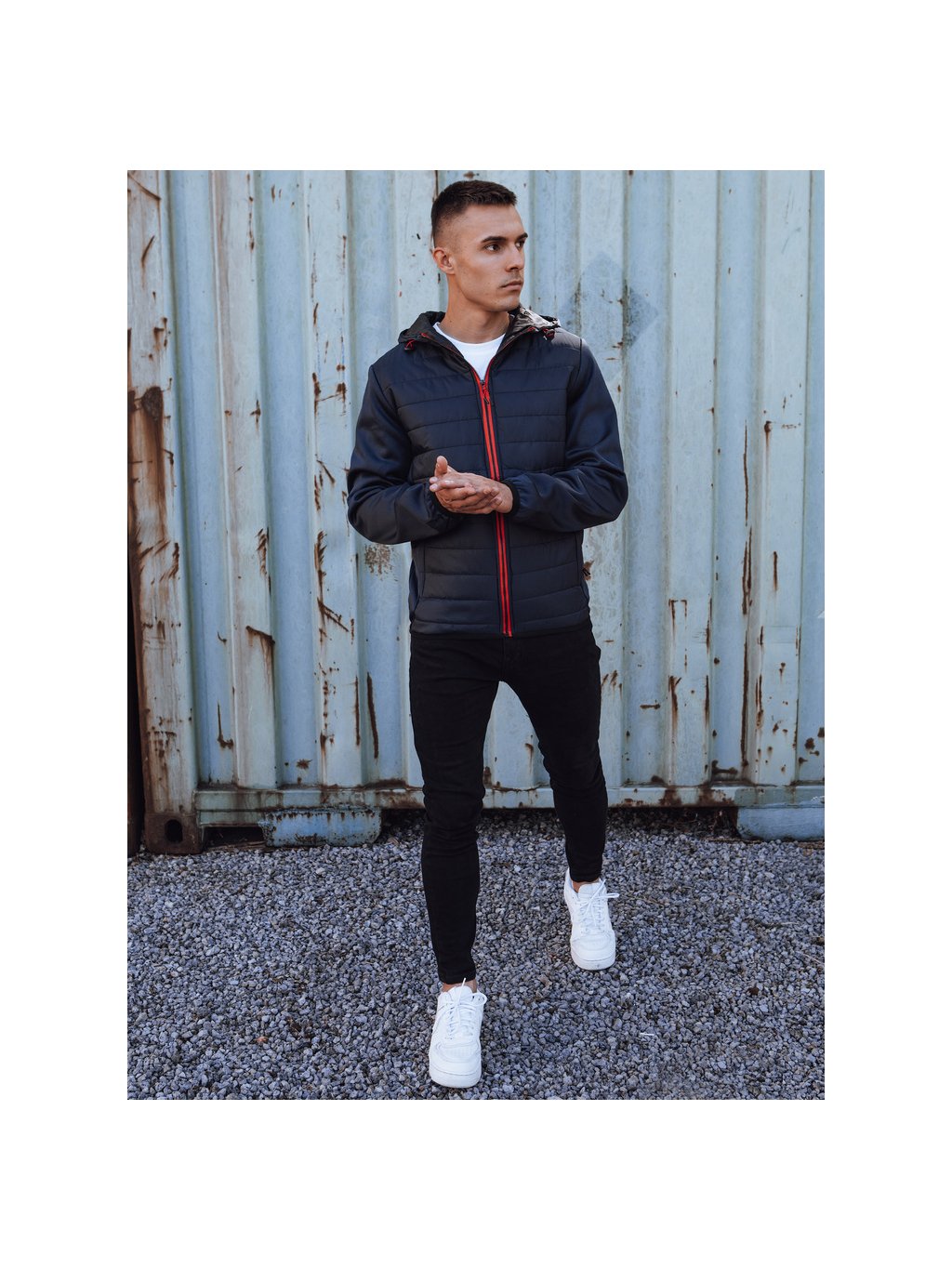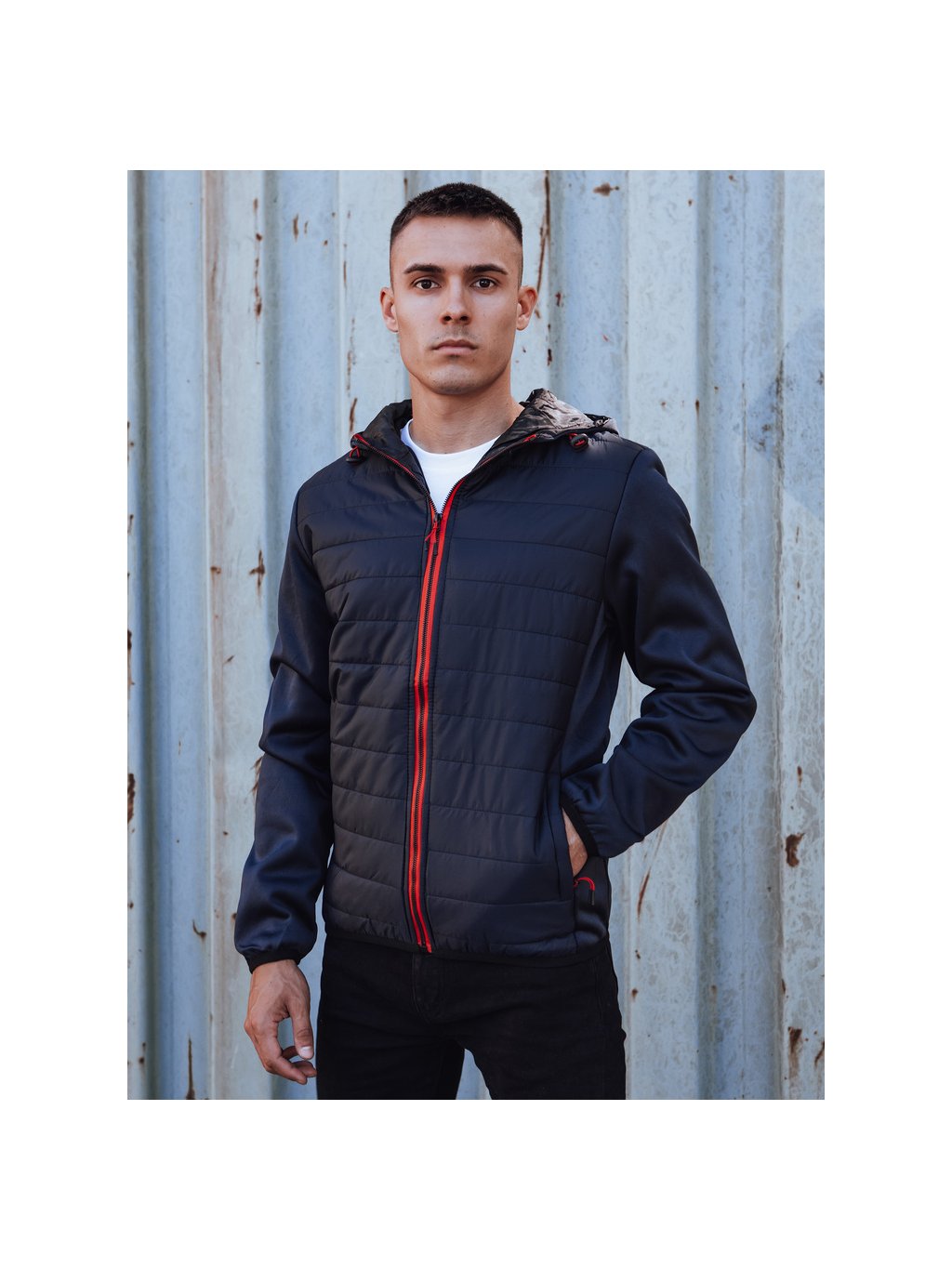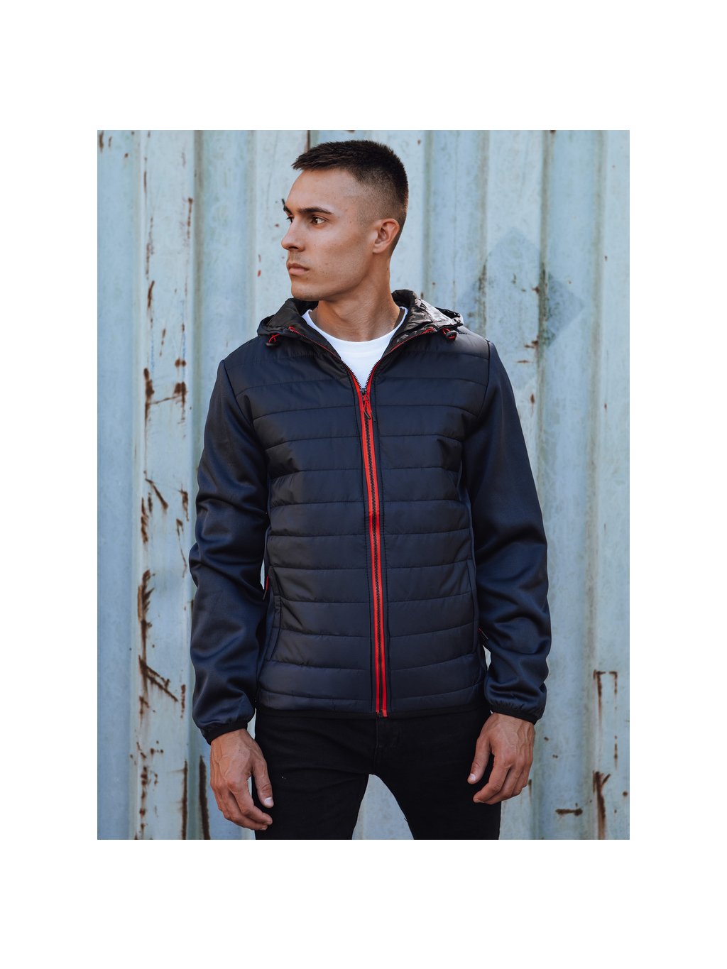 - férfi átmeneti steppelt kabát kapucnival