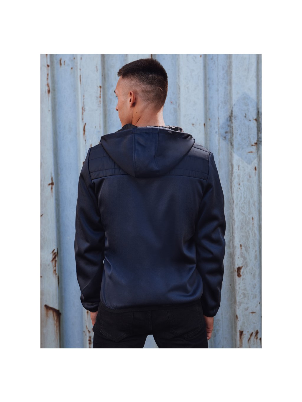 Sötétkék férfi átmeneti dzseki kapucnival