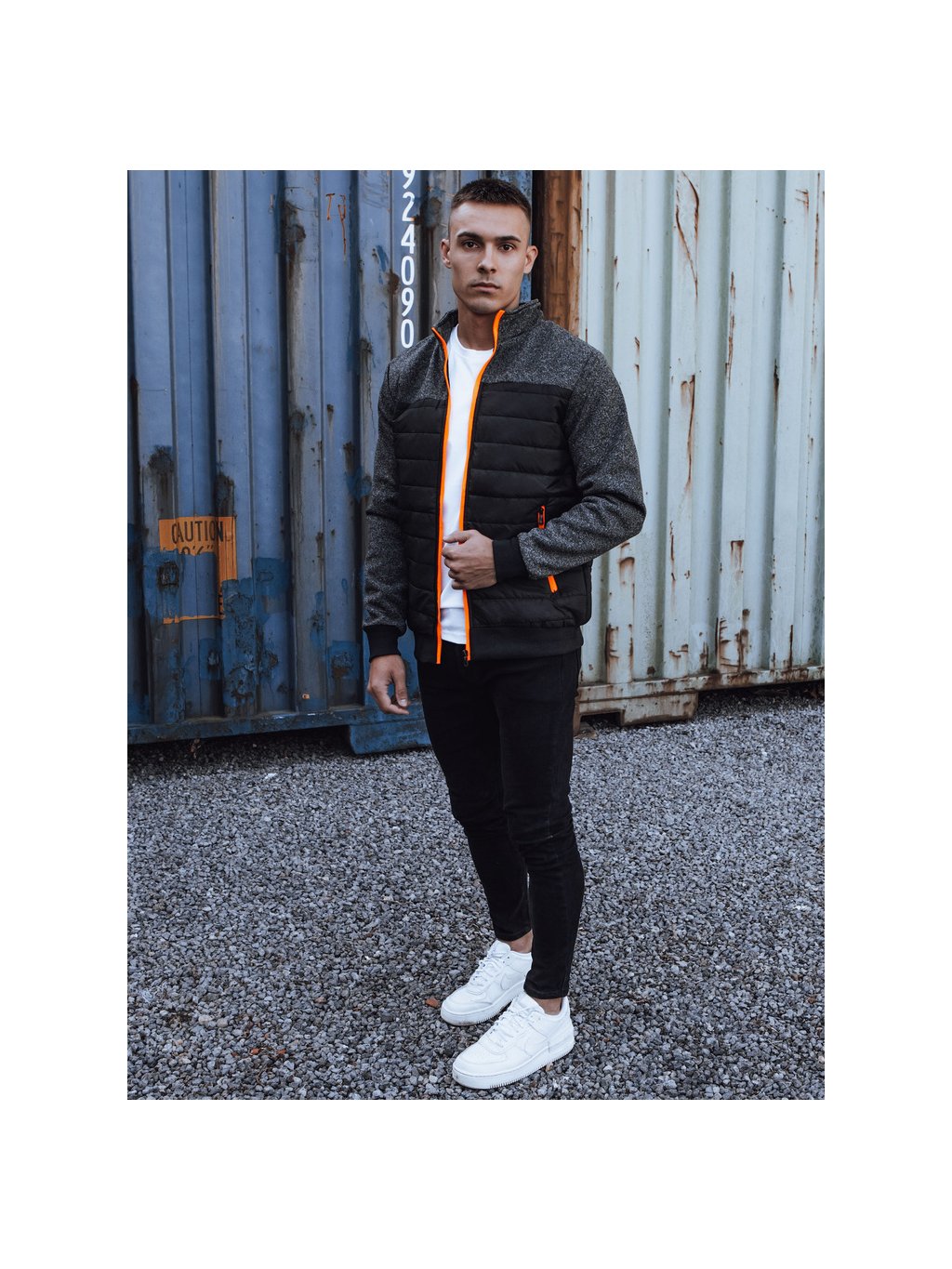 Sötétkék férfi átmeneti kabát narancssárga cipzárral