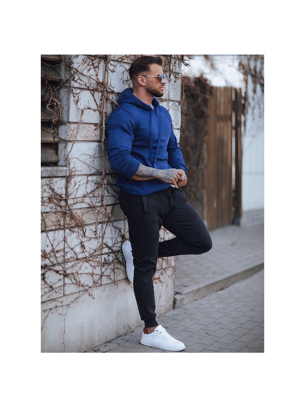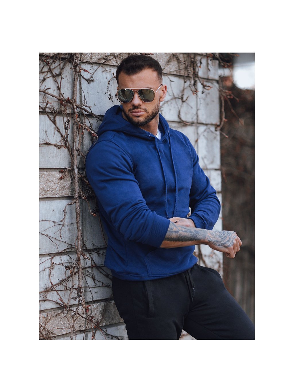 Sötétkék férfi kapucnis pulóver