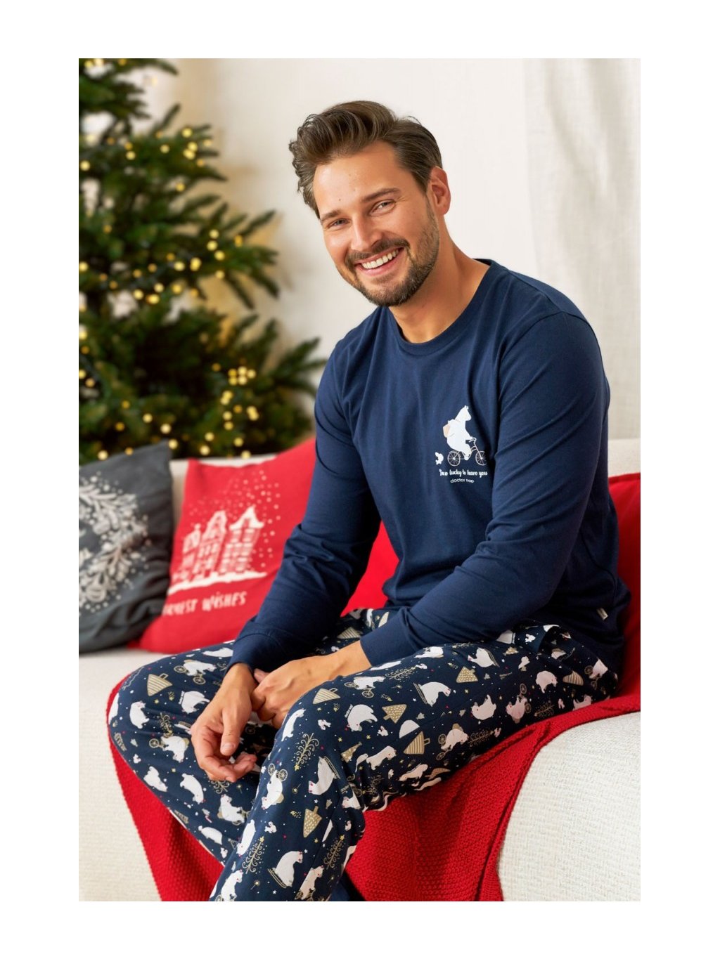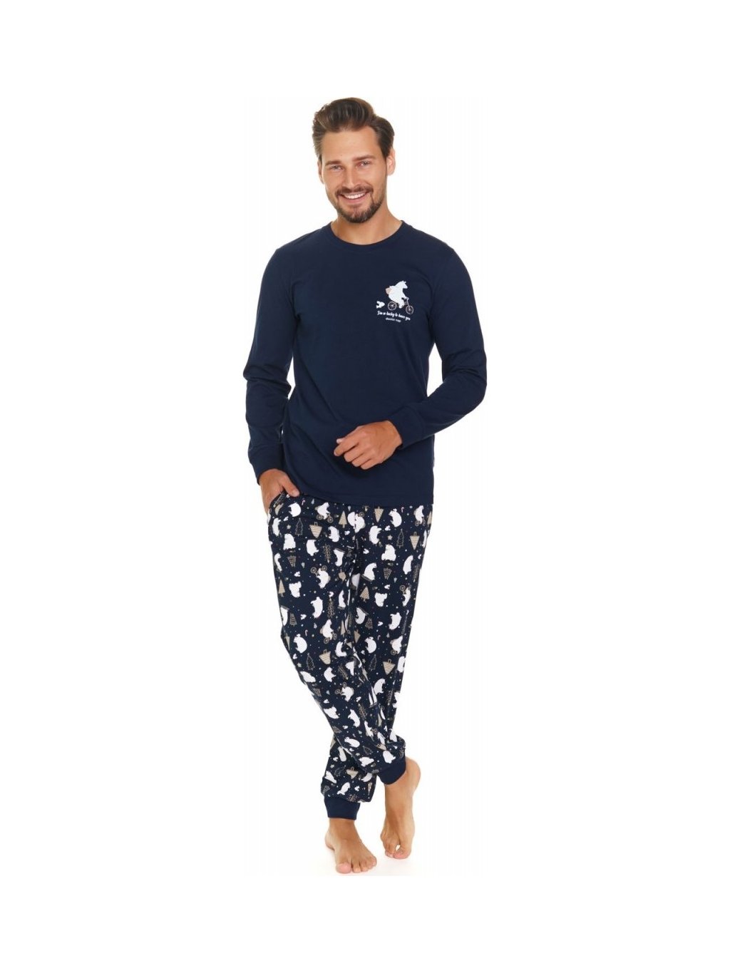 Sötétkék férfi pizsama jegesmedve mintával