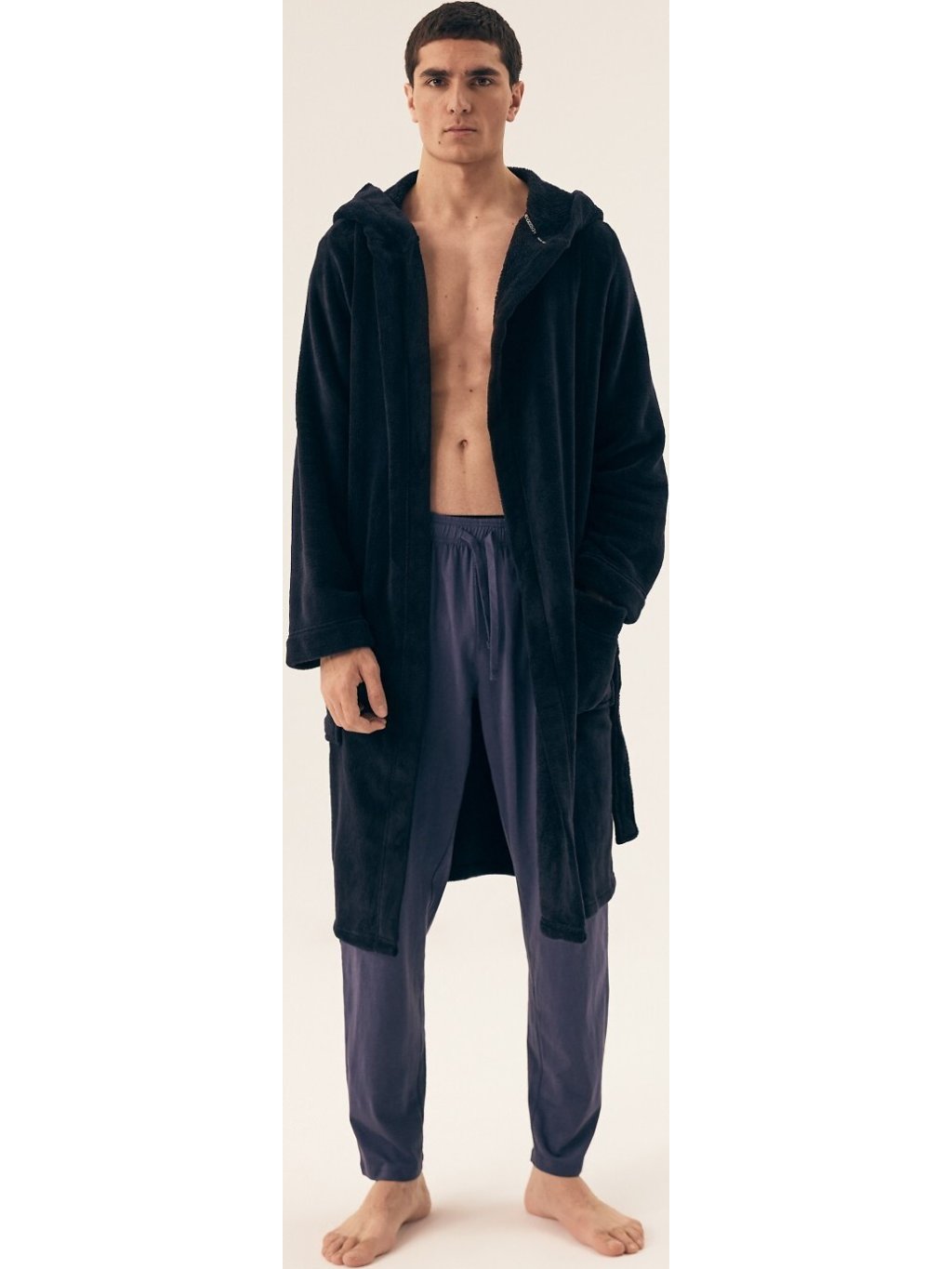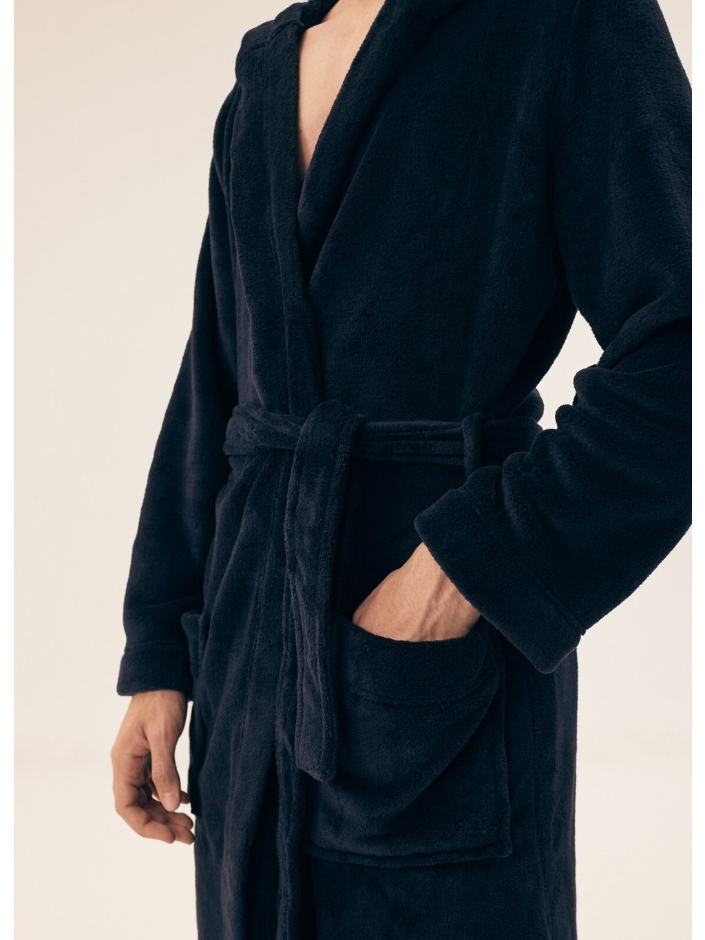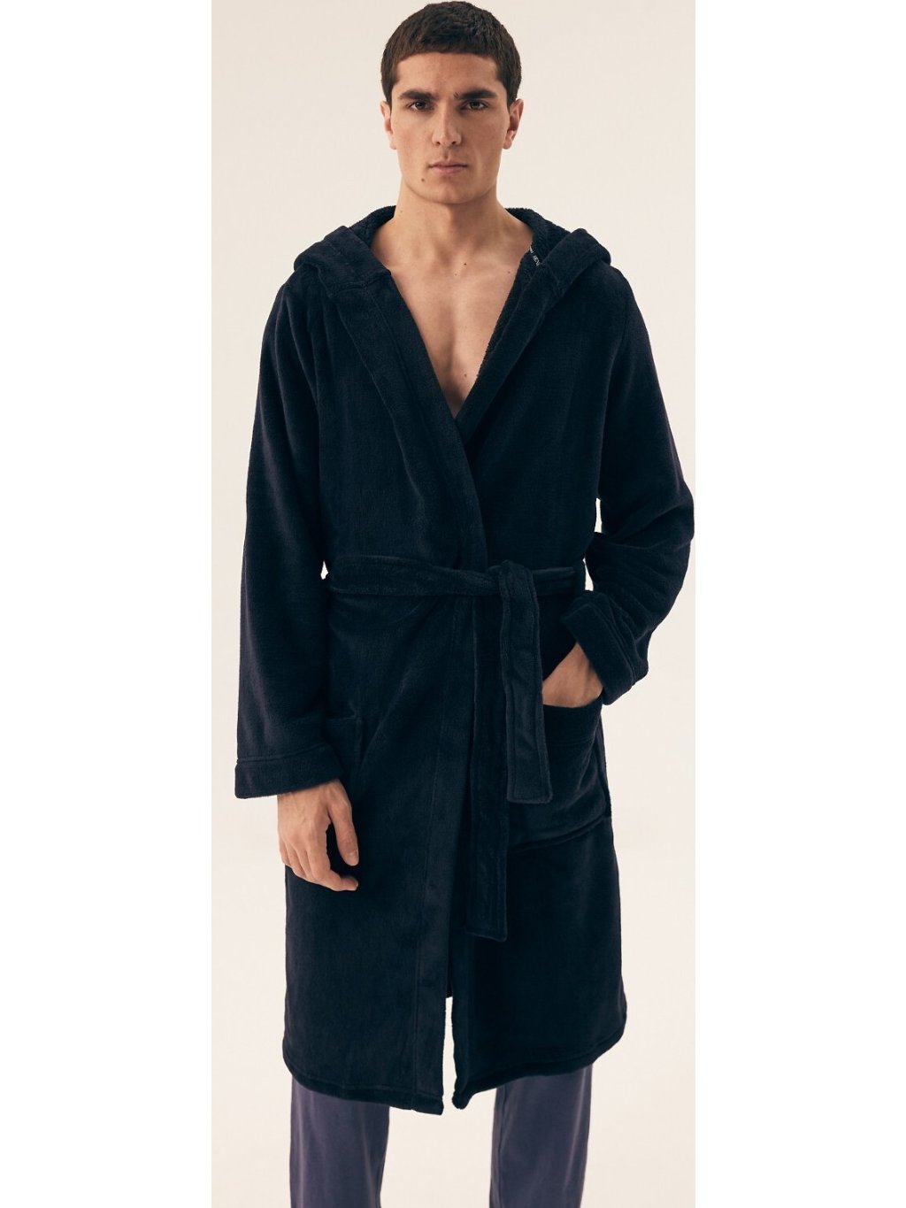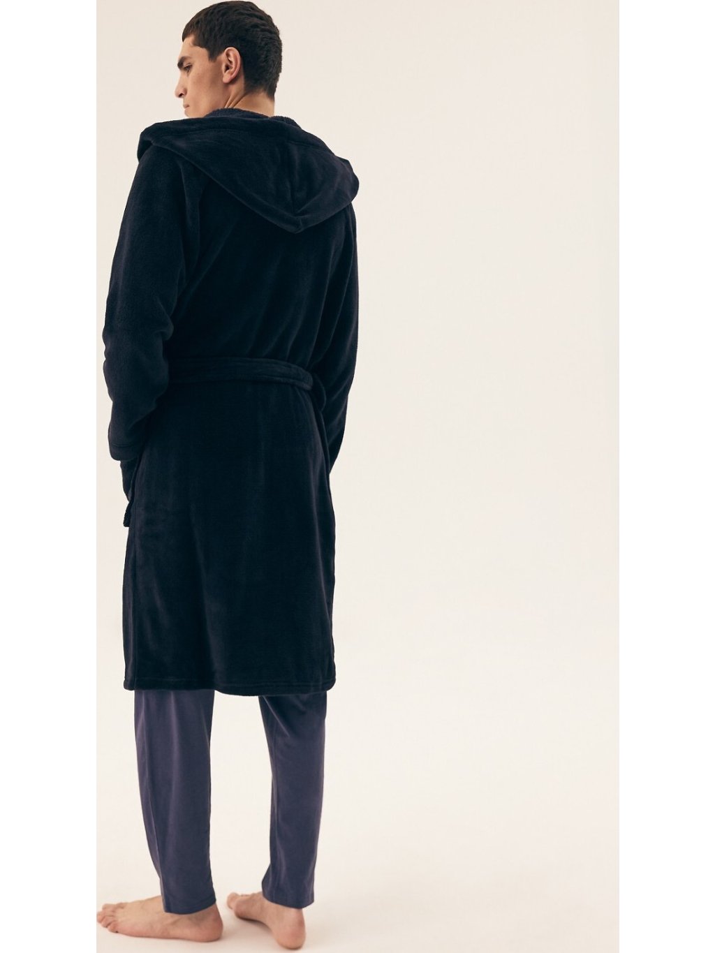 Sötétkék férfi puha fürdőköpeny kapucnival Henderson