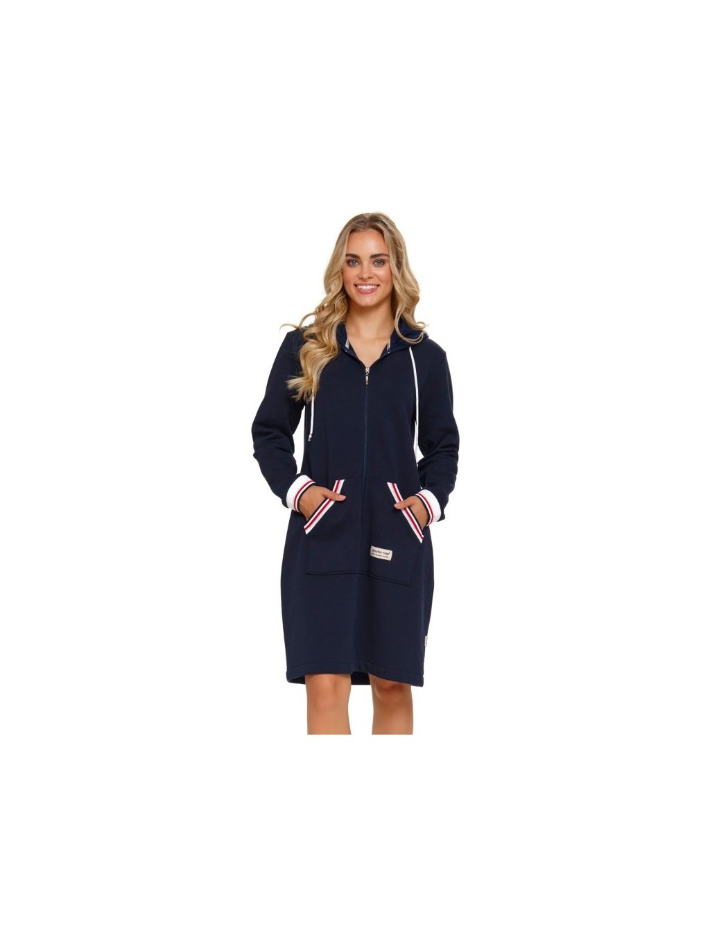 Sötétkék fürdőköpeny dekoratív szegéllyel