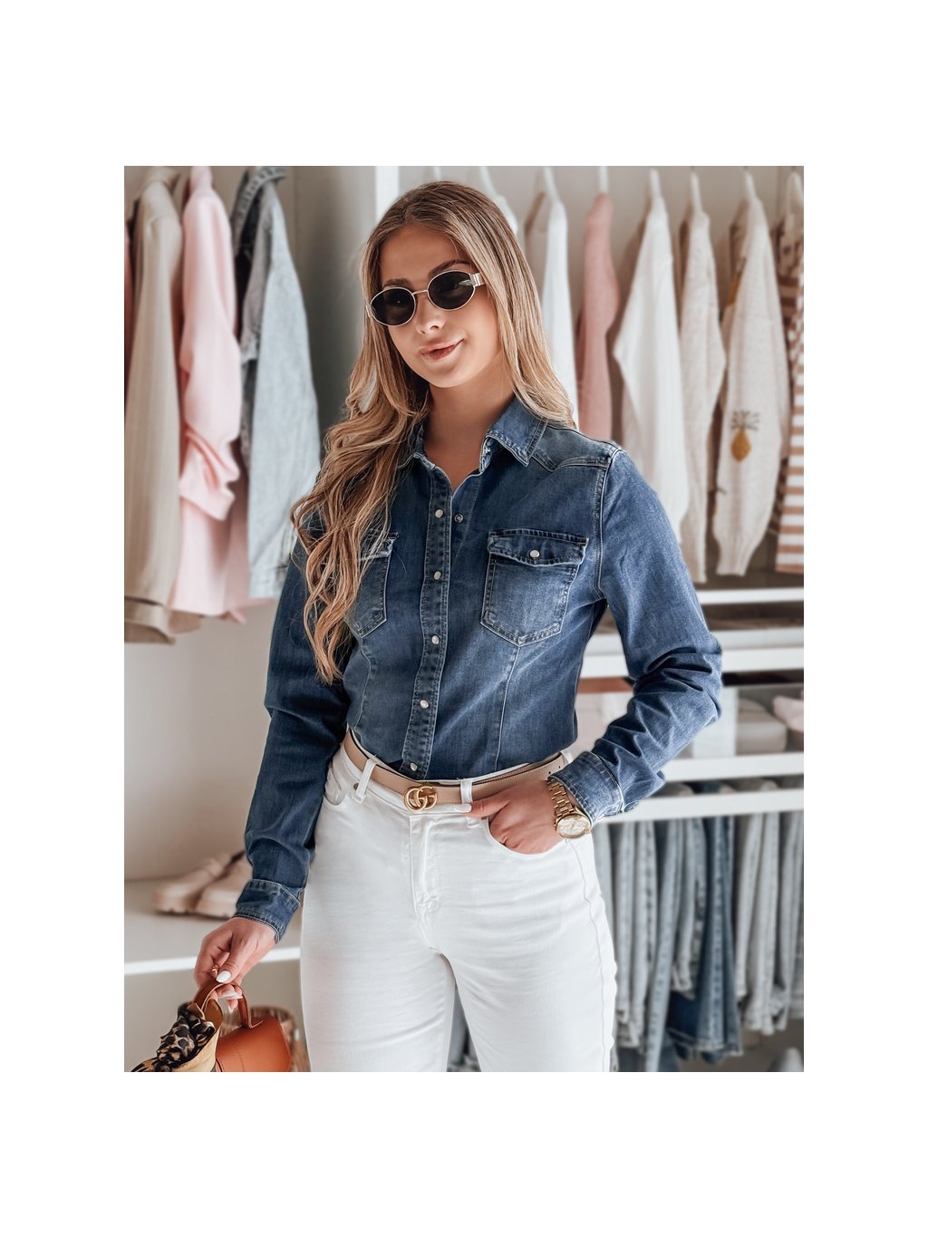 Sötétkék női farmer ing NAPSTIPS