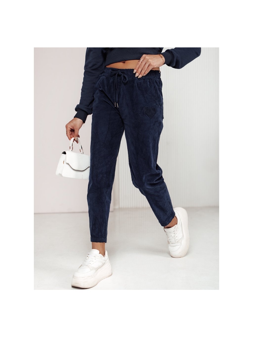 Sötétkék női kordbársony nadrág elasztikus derékkal VELVITO