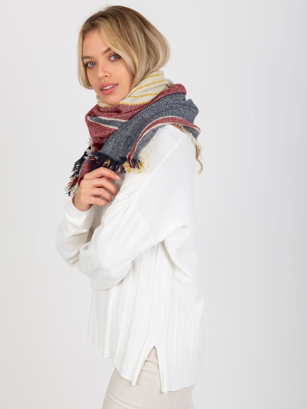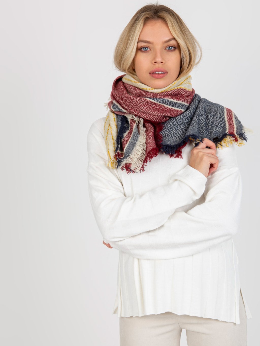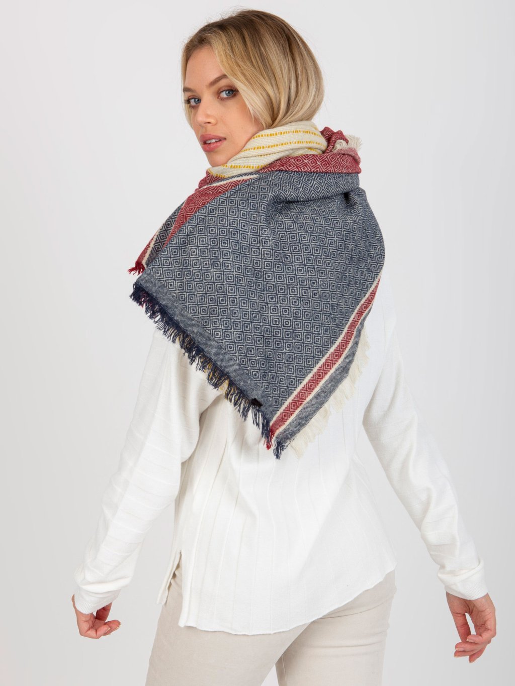 Sötétkék-piros női sál