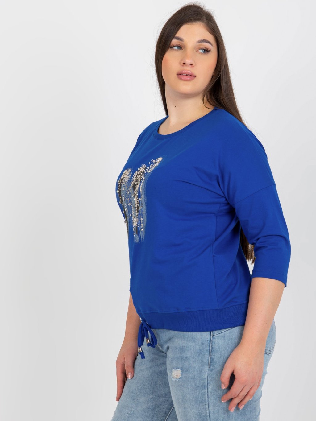 Sötétkék póló strasszos applikációval