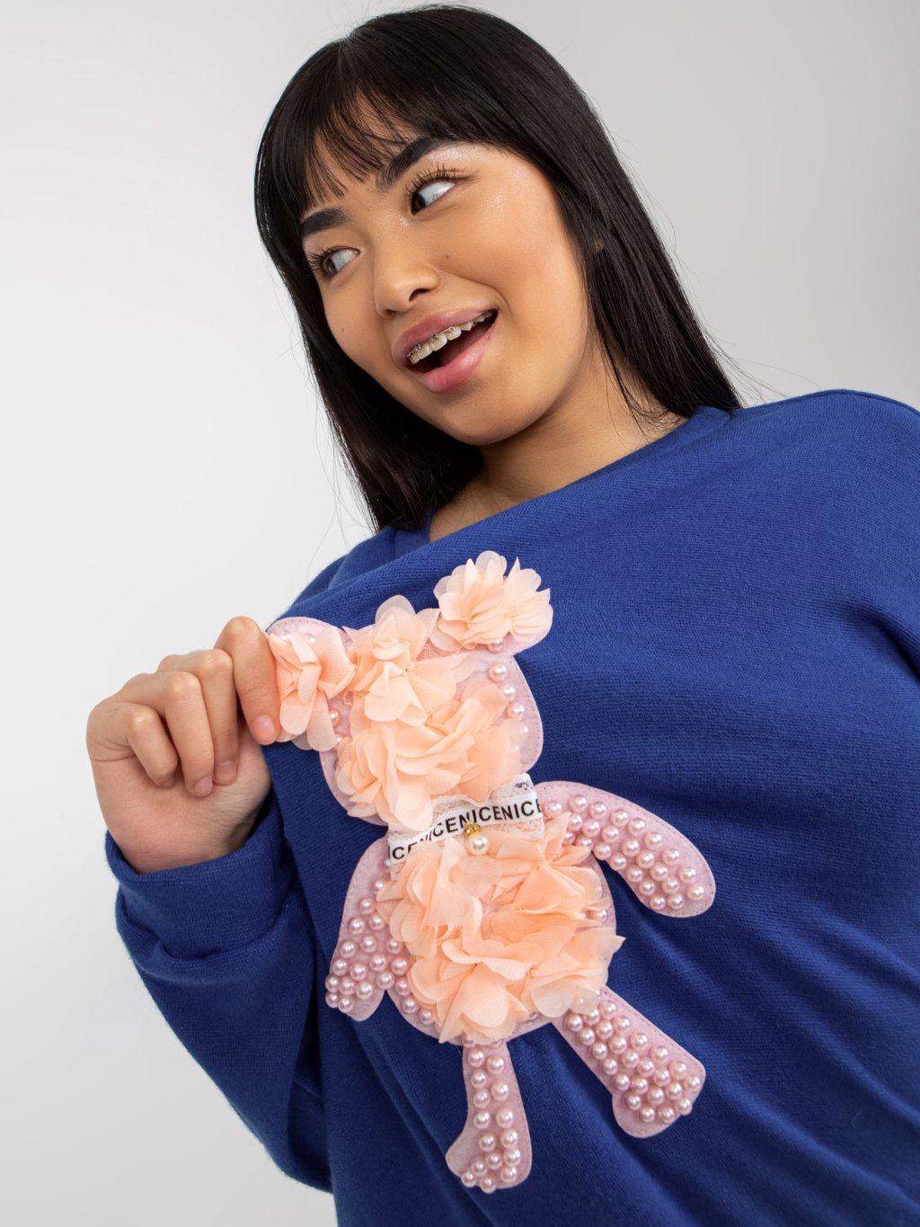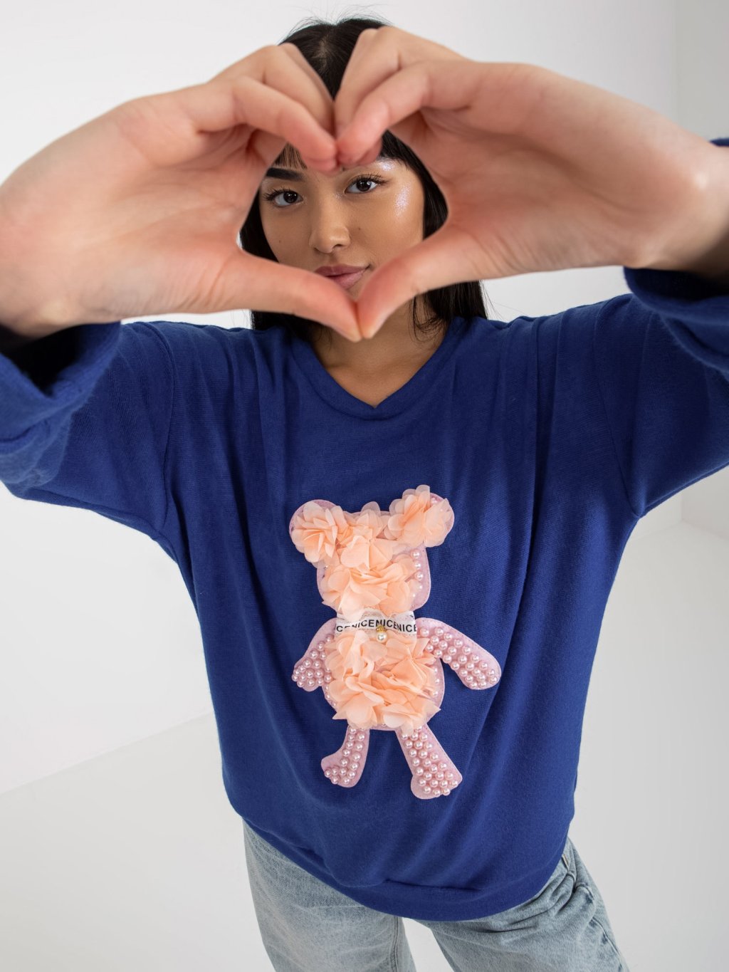 Sötétkék pulóver macival