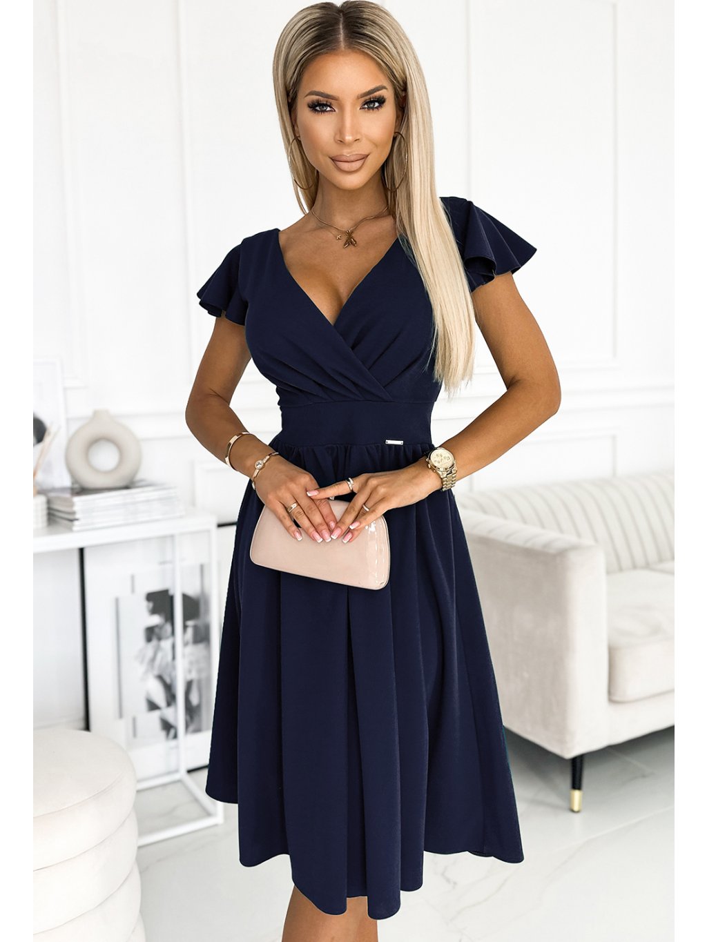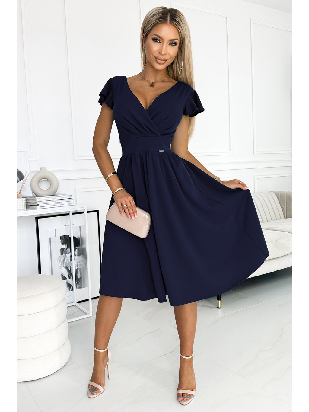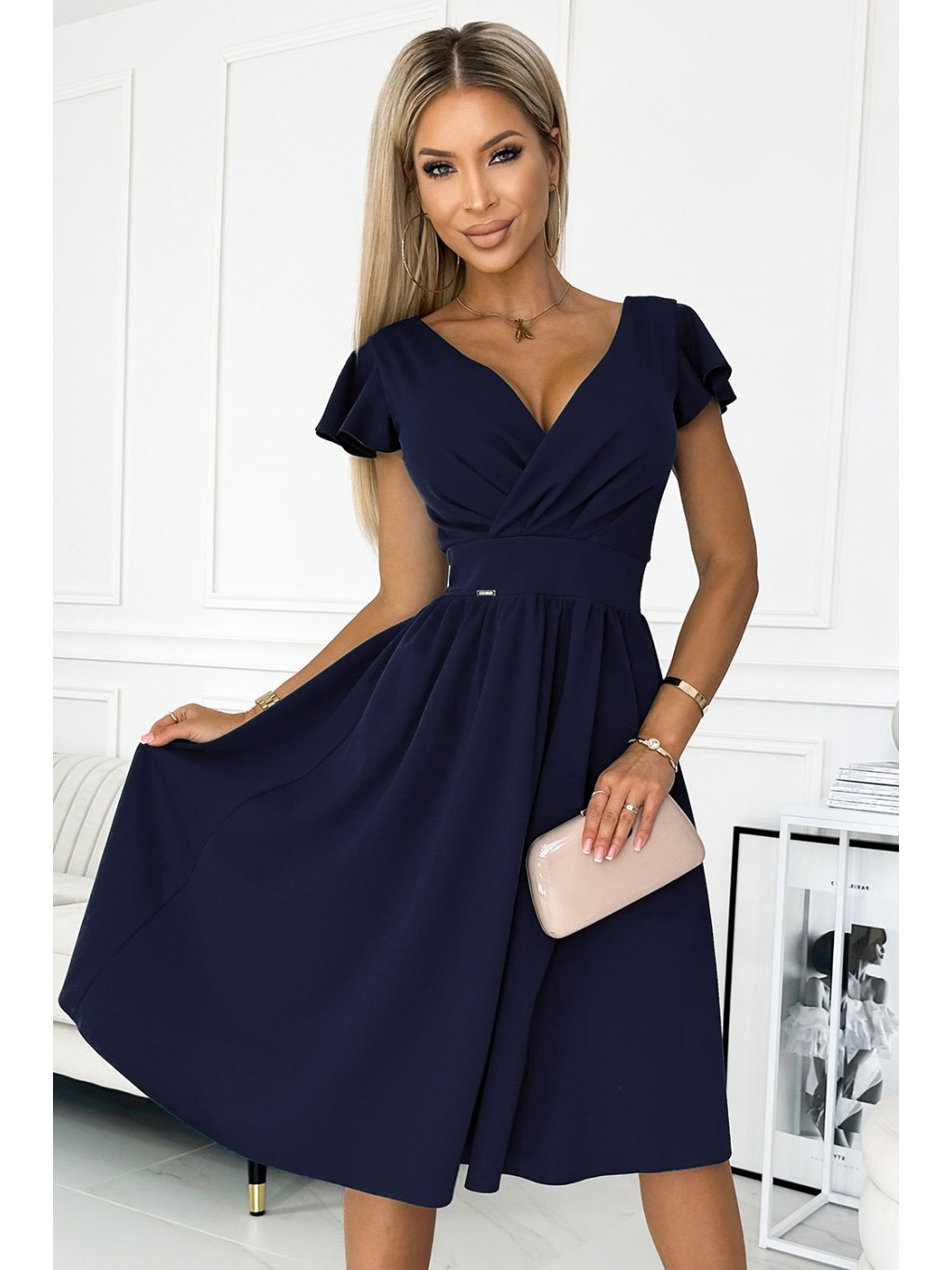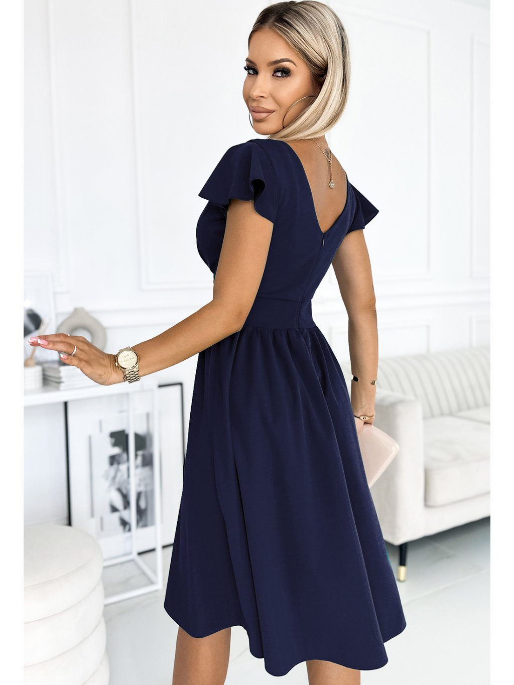 Sötétkék ruha nyakkivágással és rövid ujjakkal MATYLDA
