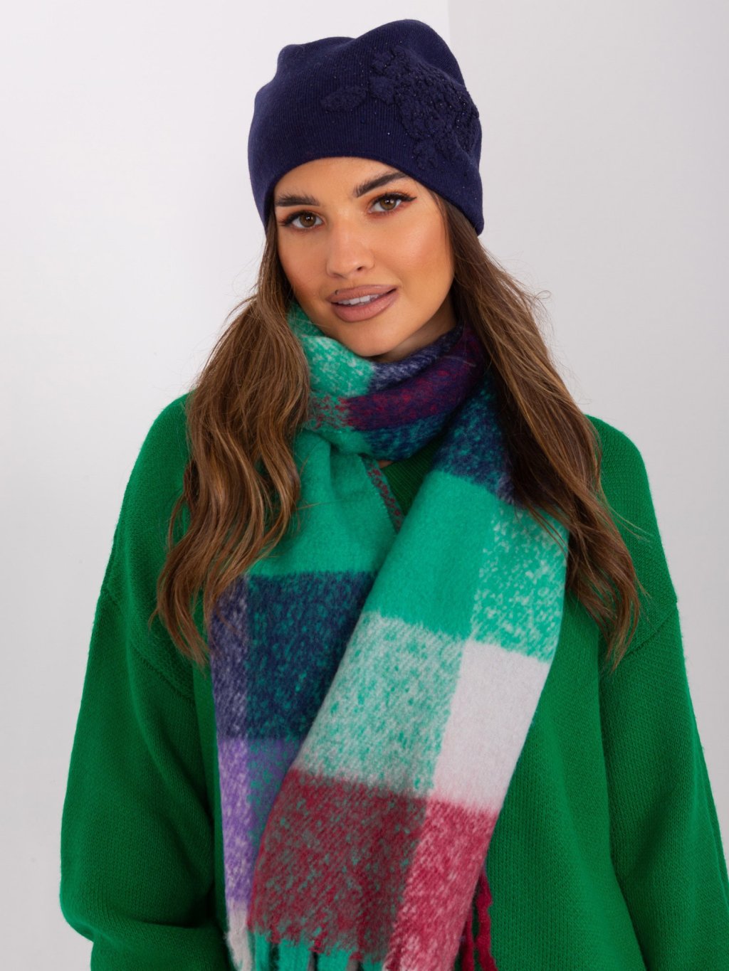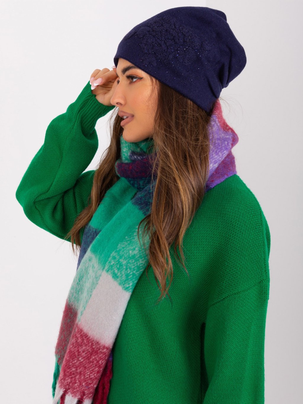 Sötétkék sapka virágos díszítéssel és kövekkel