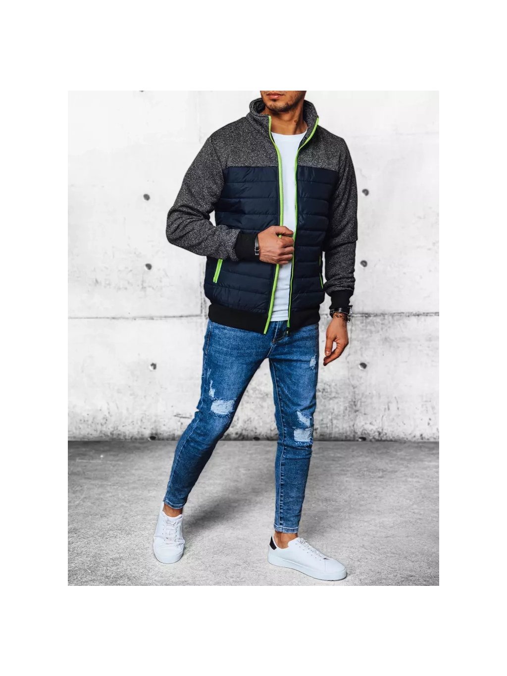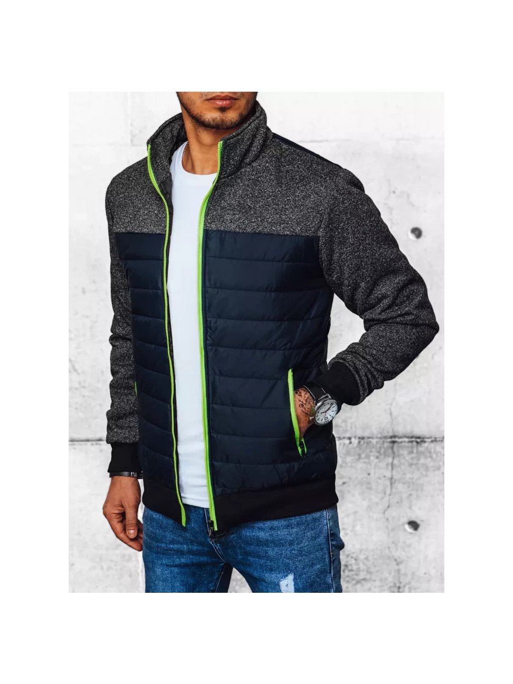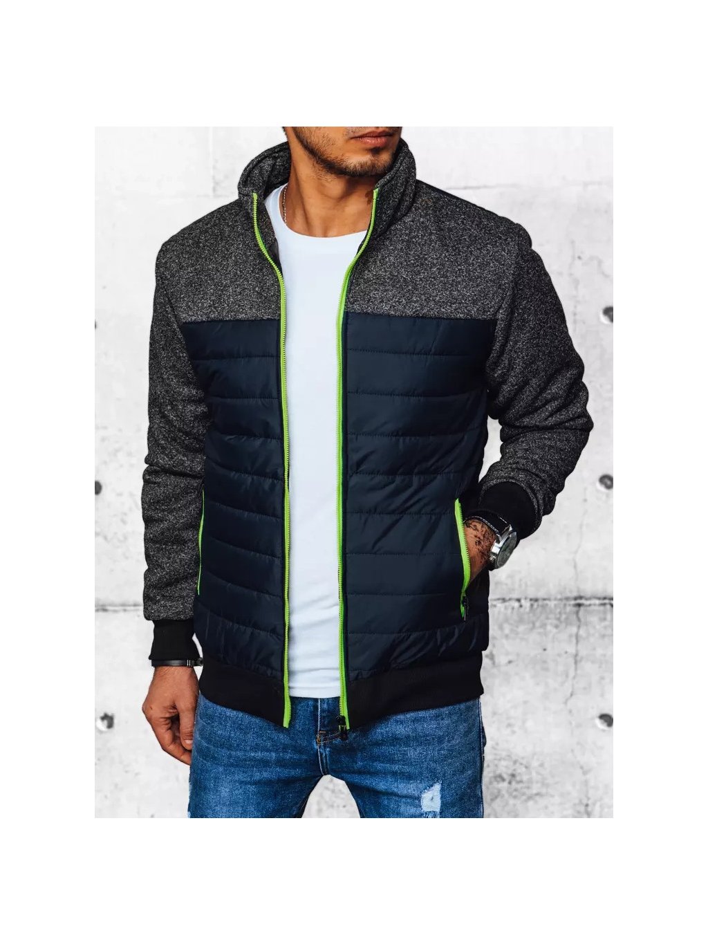 Sötétkék steppelt átmeneti férfi dzseki