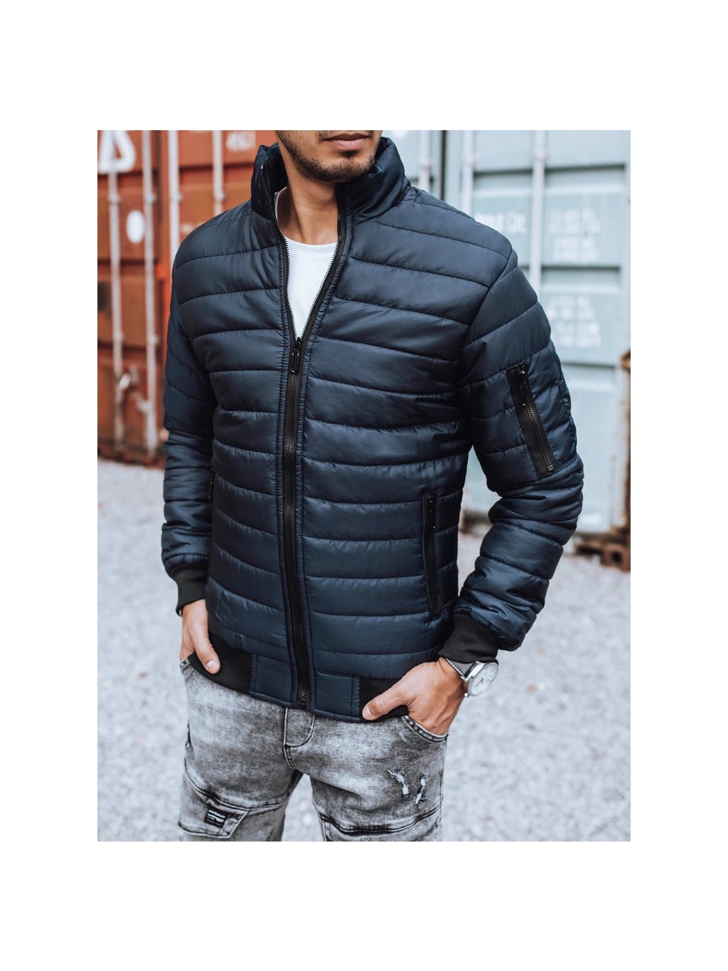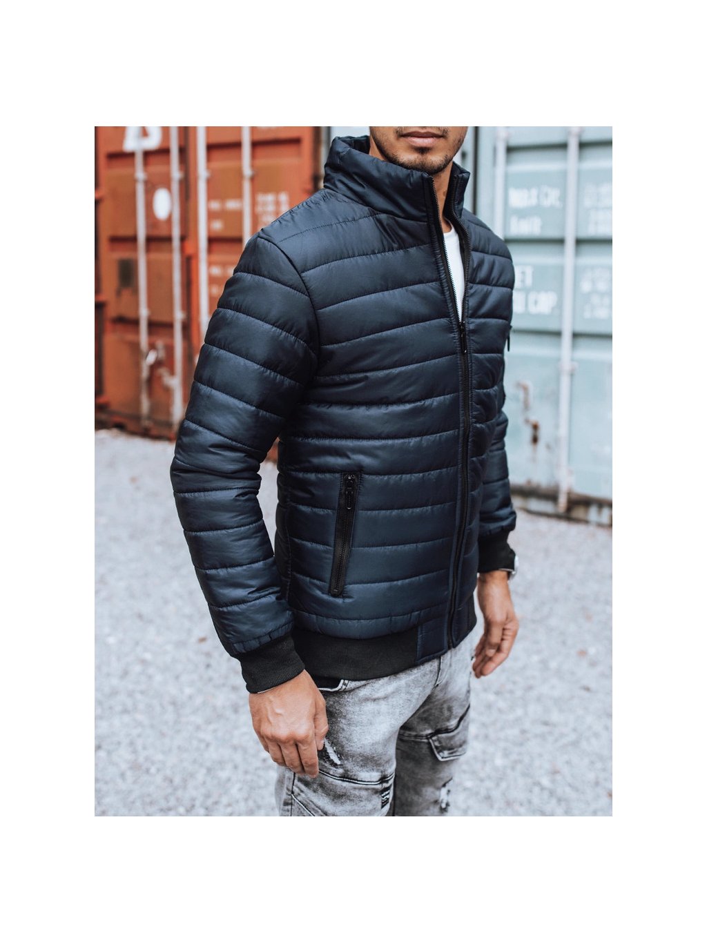 Sötétkék steppelt átmeneti kabát