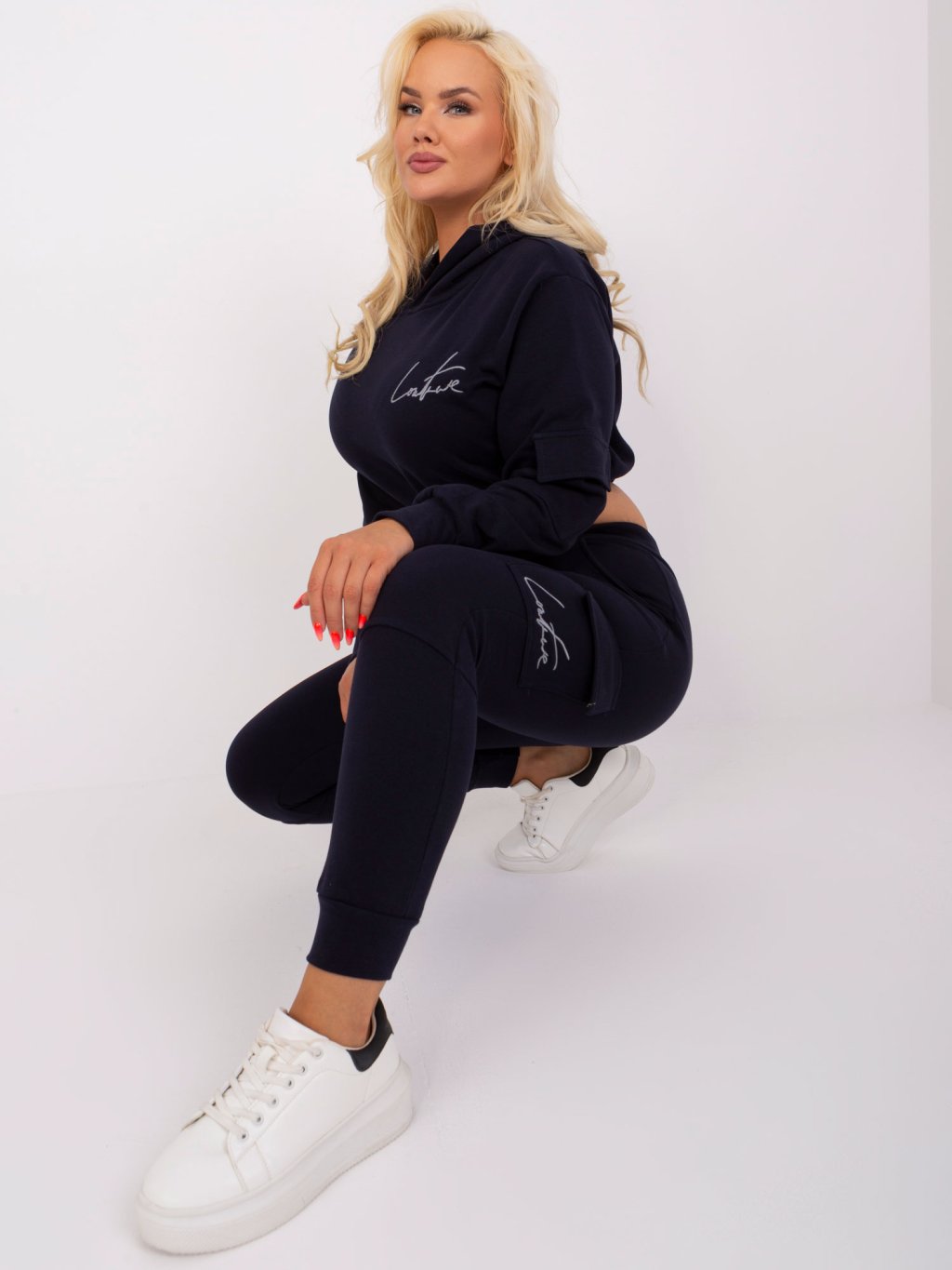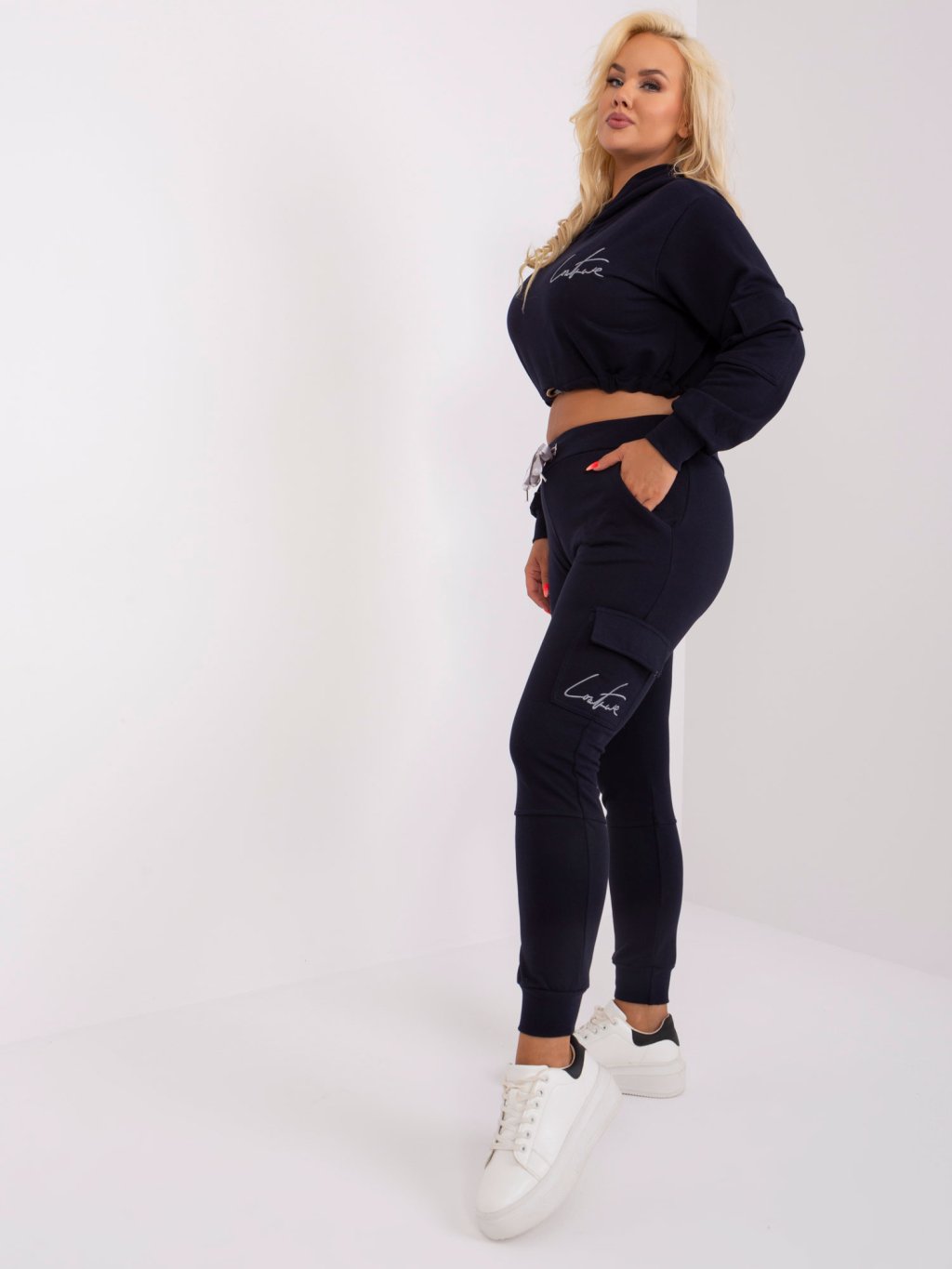 Sötétkék tréningruha szett zsebekkel