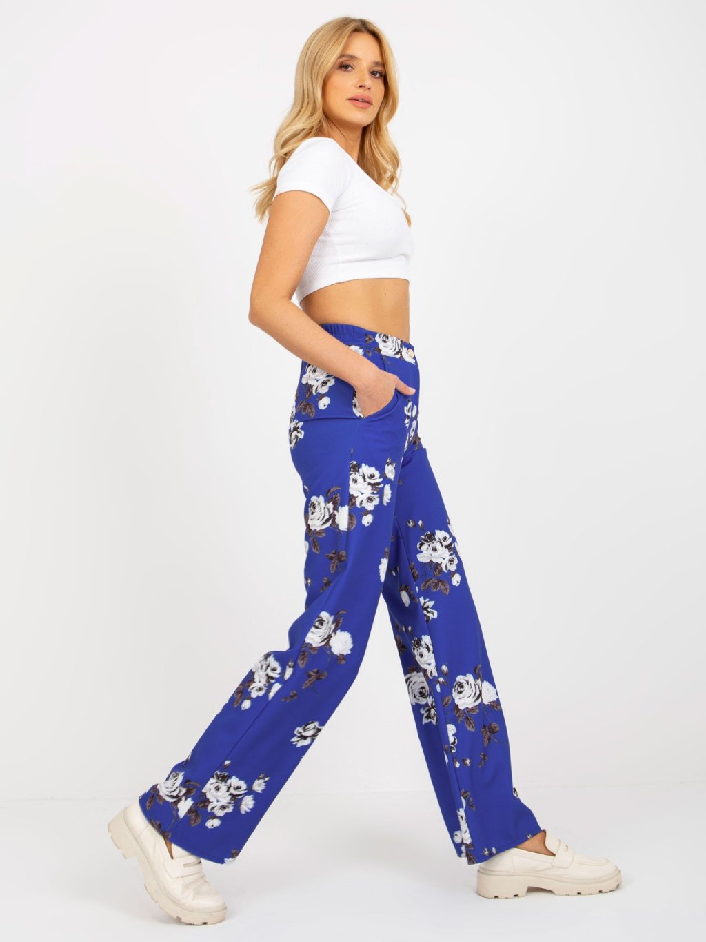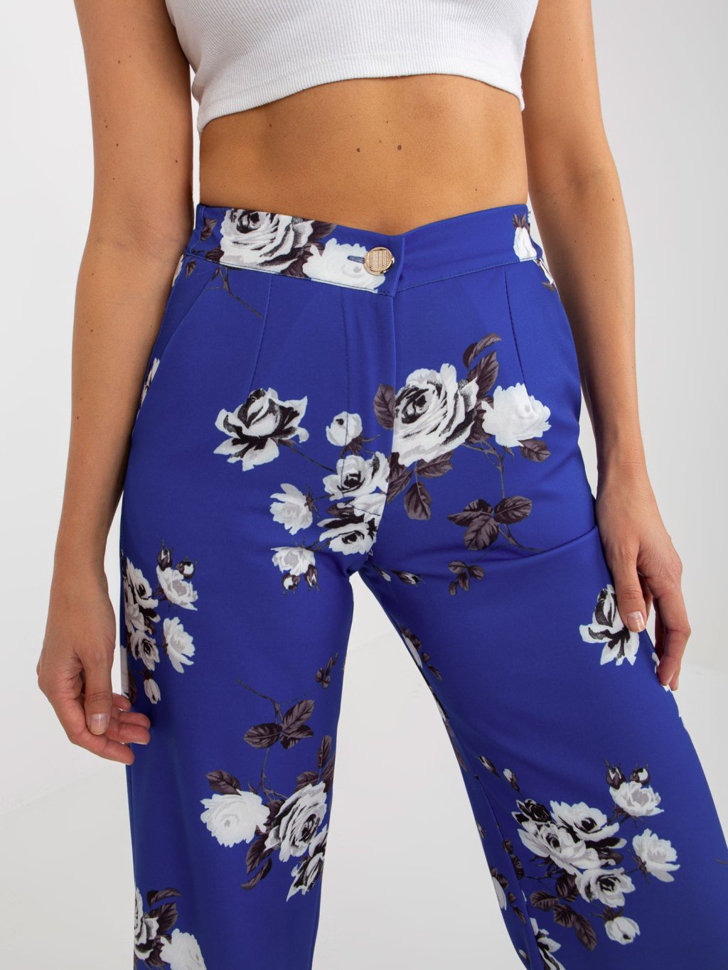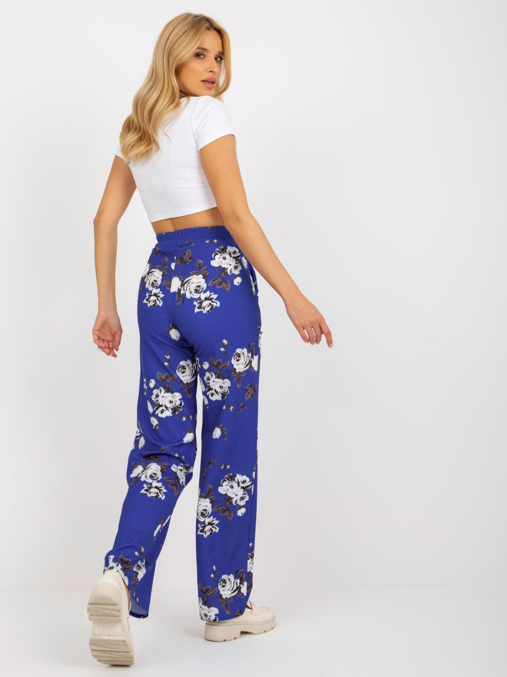 Sötétkék virágos szövetnadrág