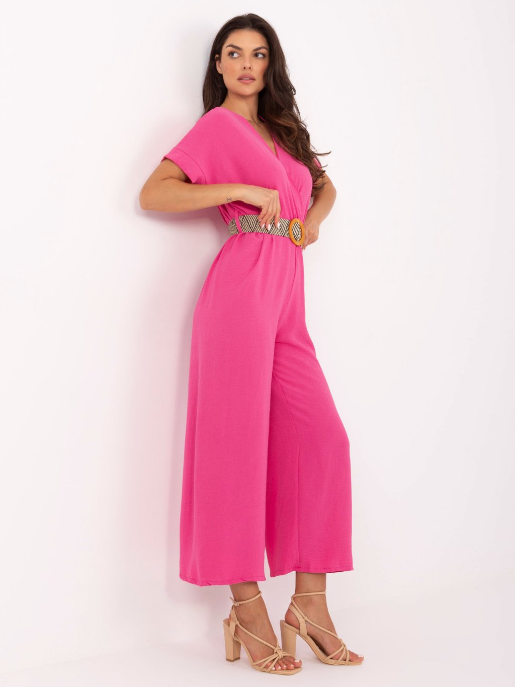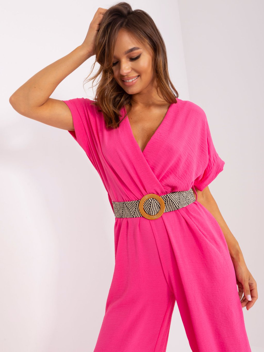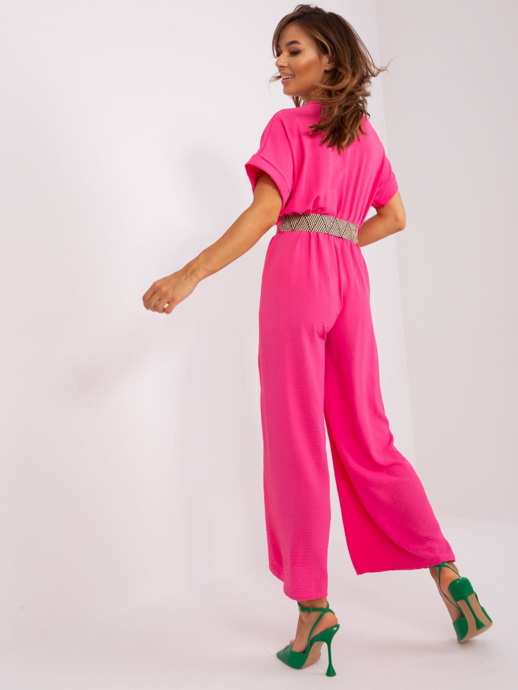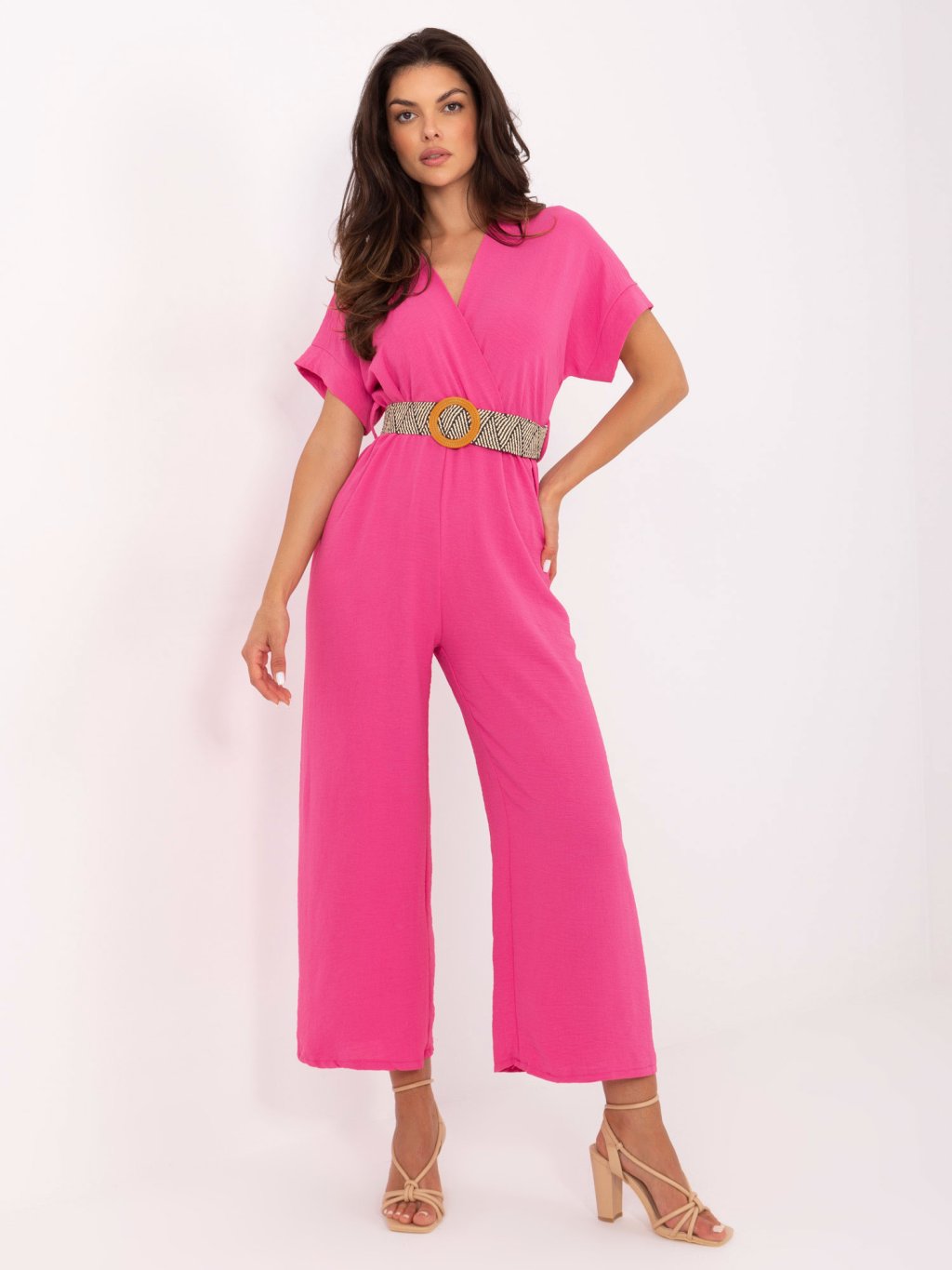 Sötétrózsaszín, elegáns, széles szárú, rövid ujjú kezeslábas