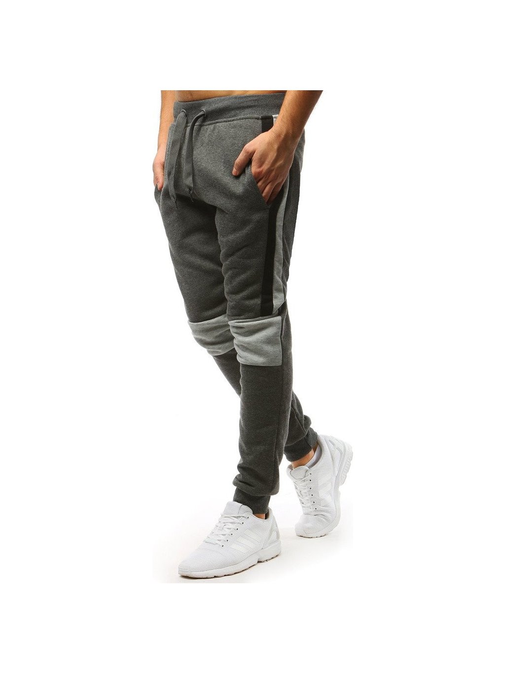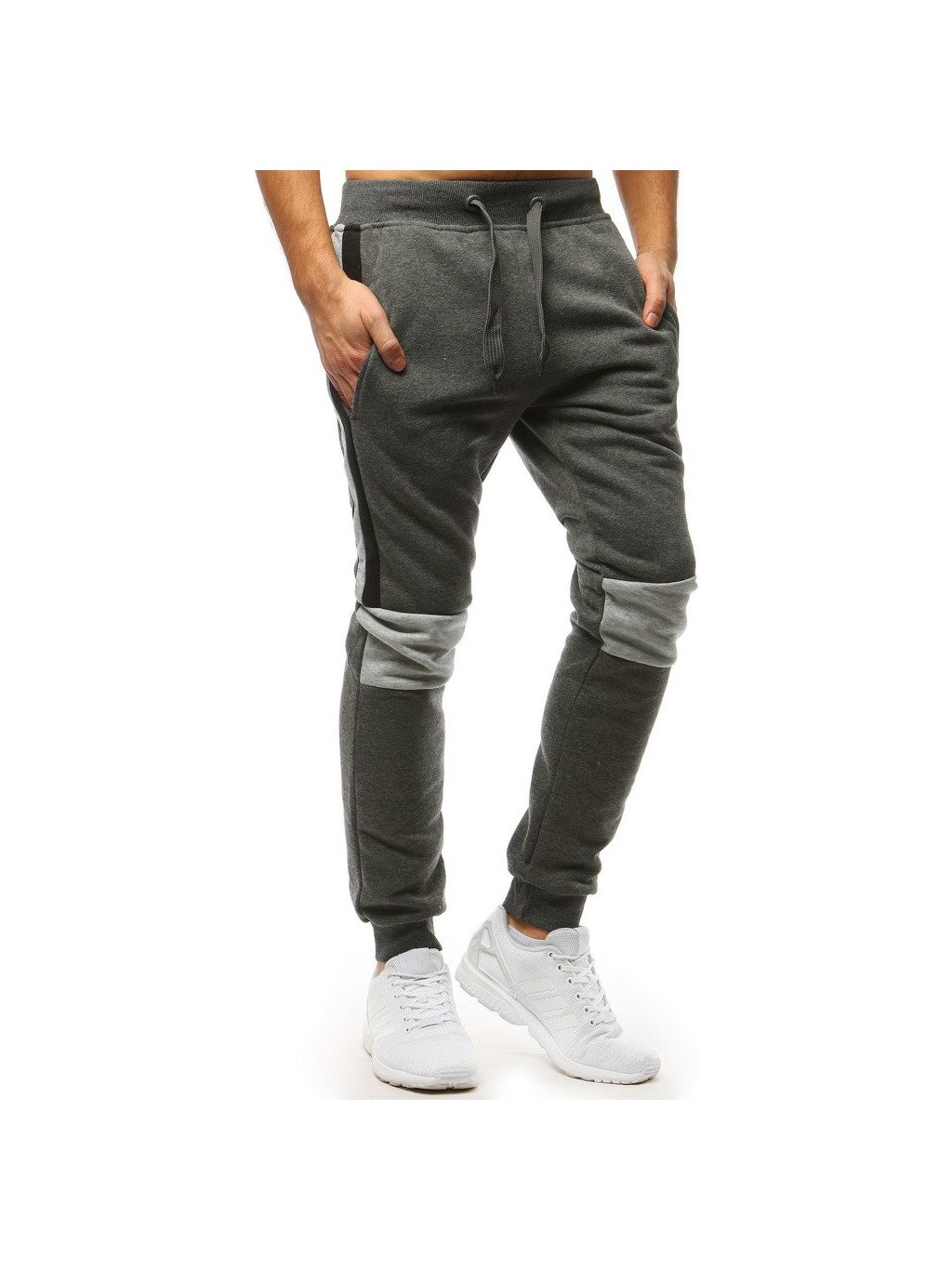 Sötétszürke férfi melegítőnadrág világosszürke csíkkal