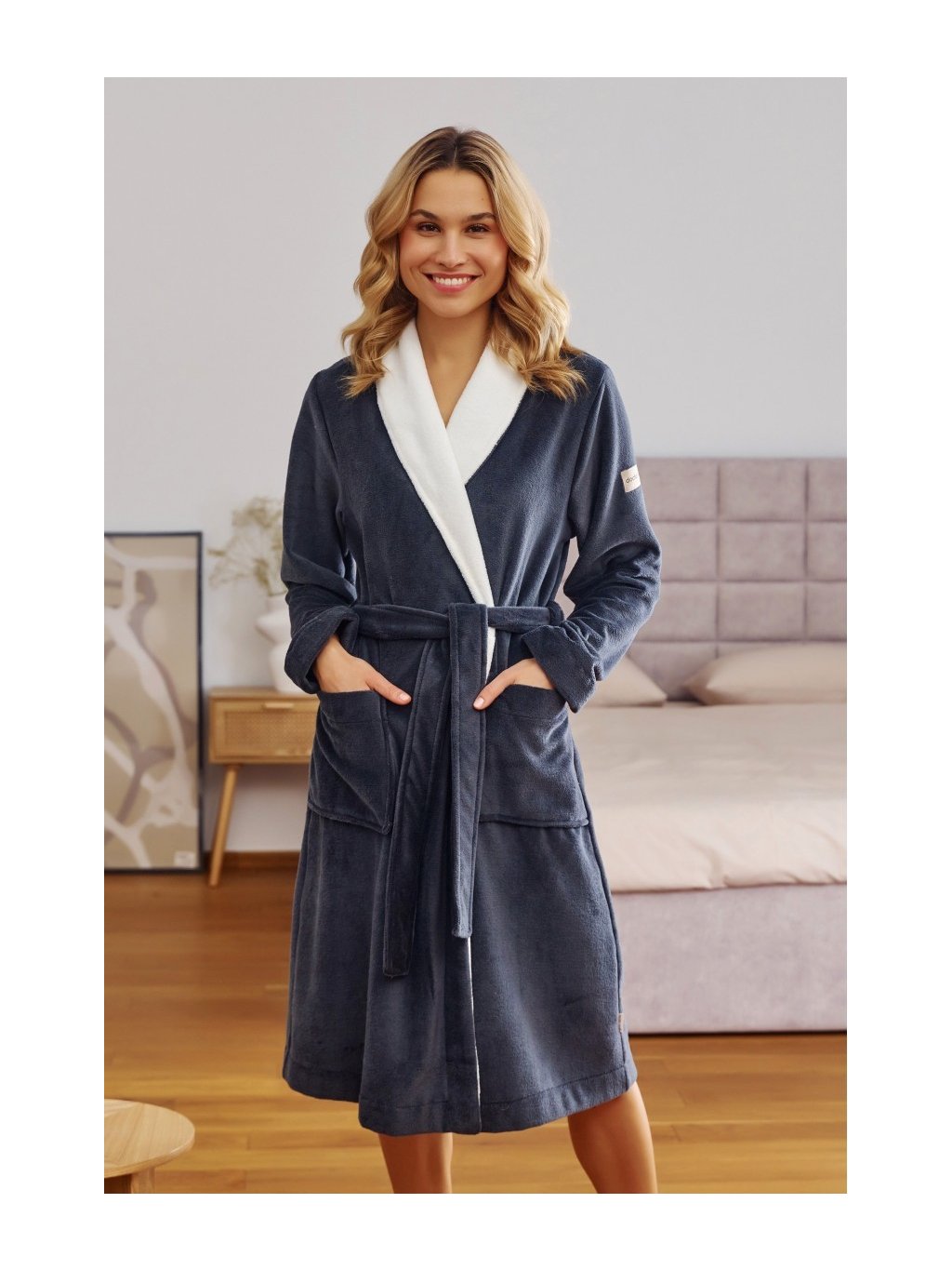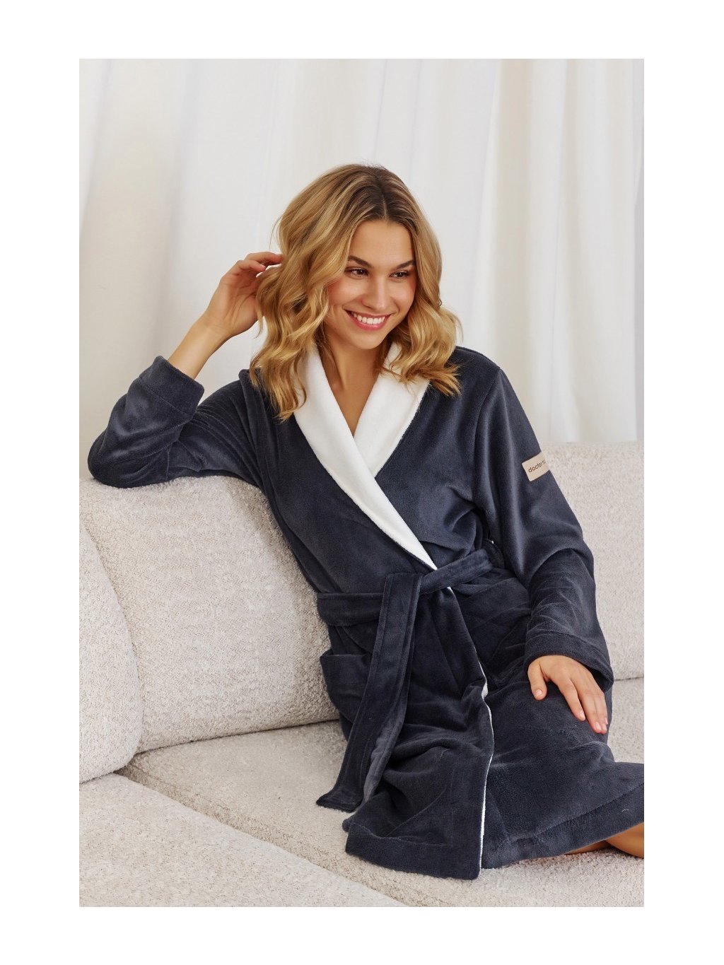 Sötétszürke hosszú fürdőköpeny kapucni nélkül SOFT