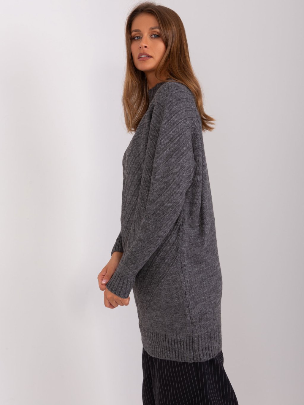 Sötétszürke hosszú oversize garbós pulóver S BA-SW-8013.14P-dark grey
