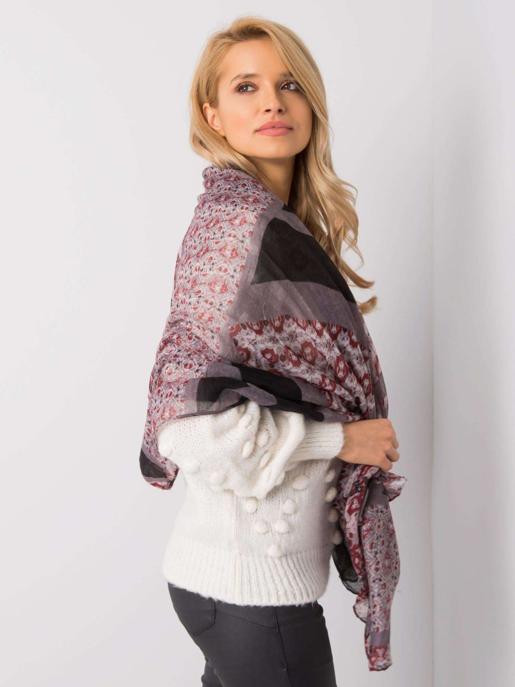 Sötétszürke kendő színes mintával