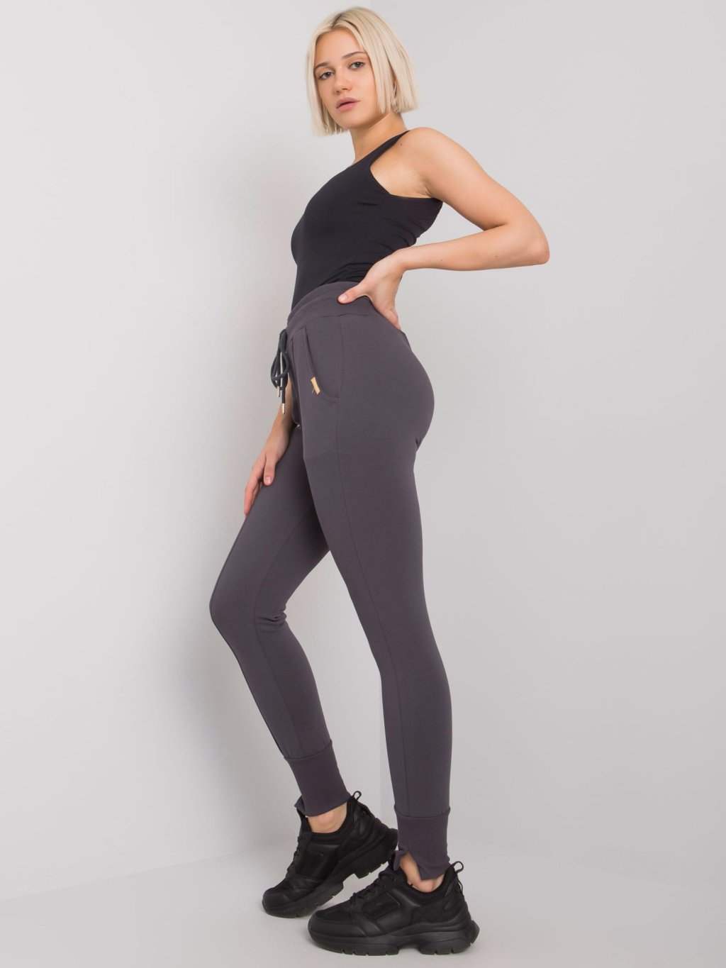 Sötétszürke magas derekú női melegítőnadrág