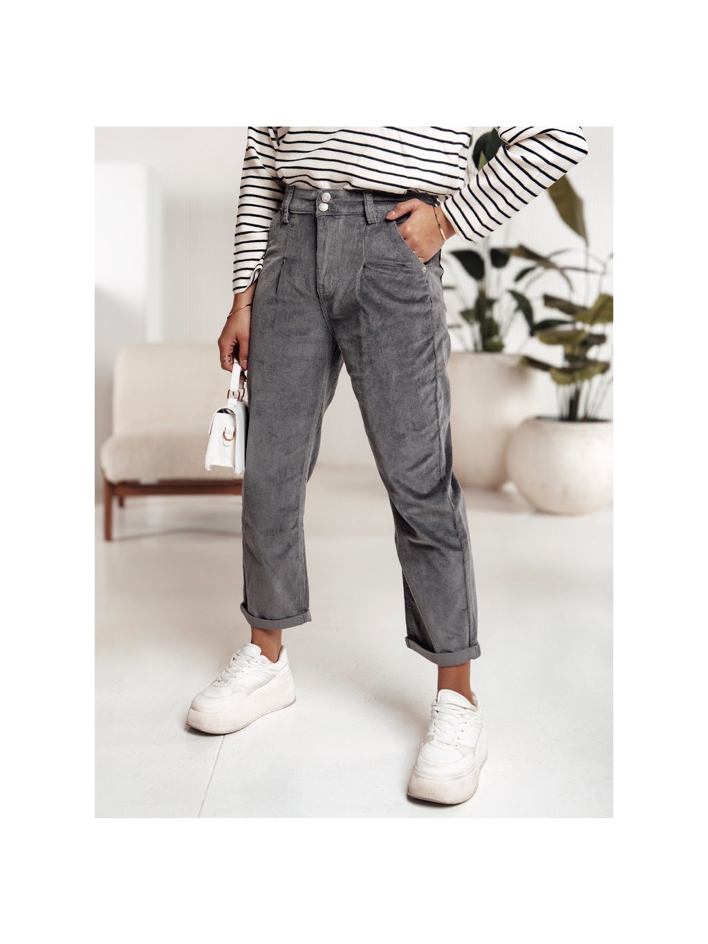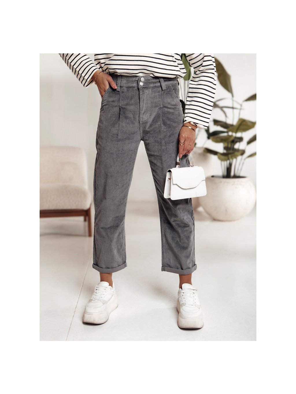 Sötétszürke női LUVORISA kordbársony nadrág