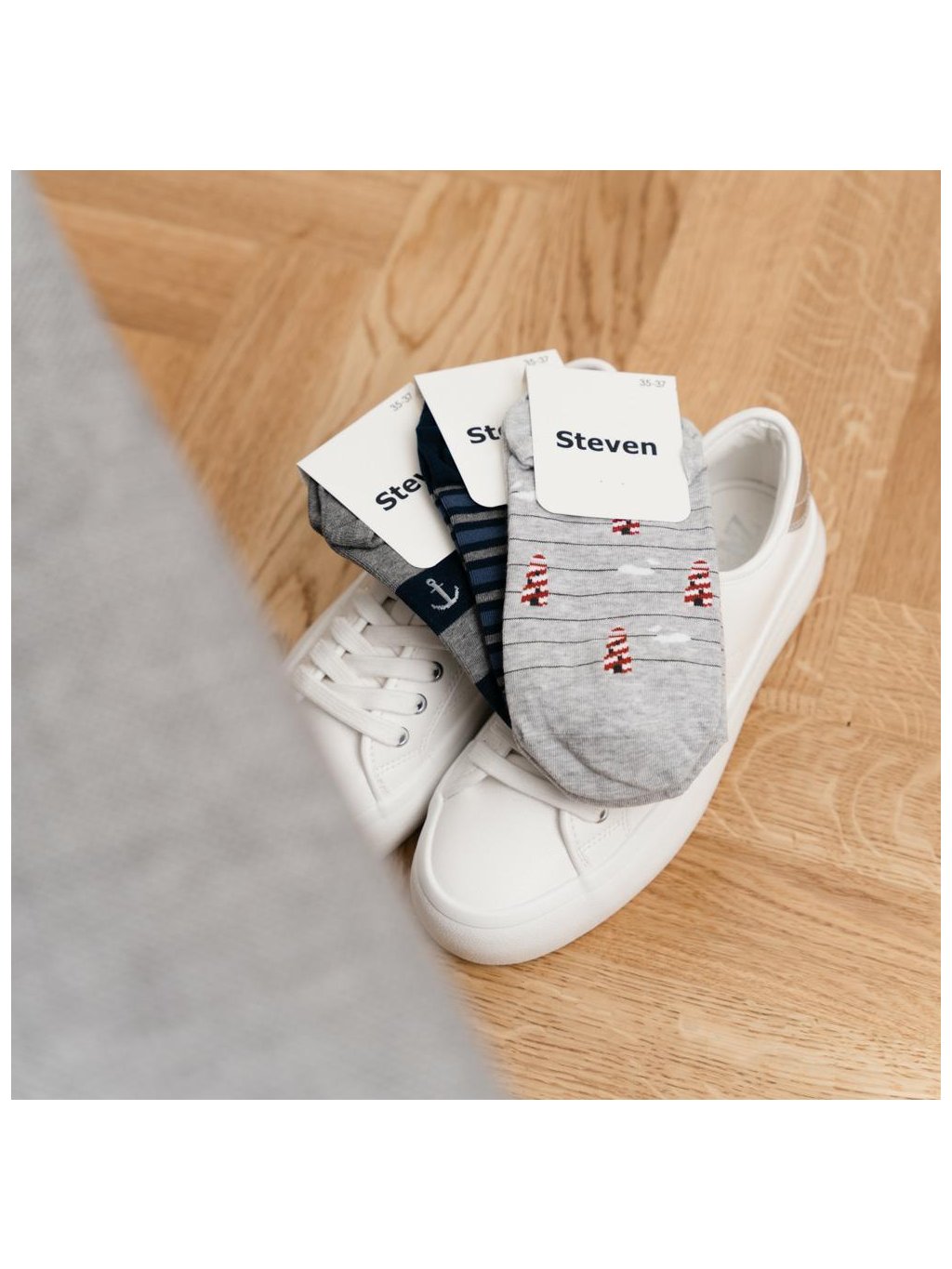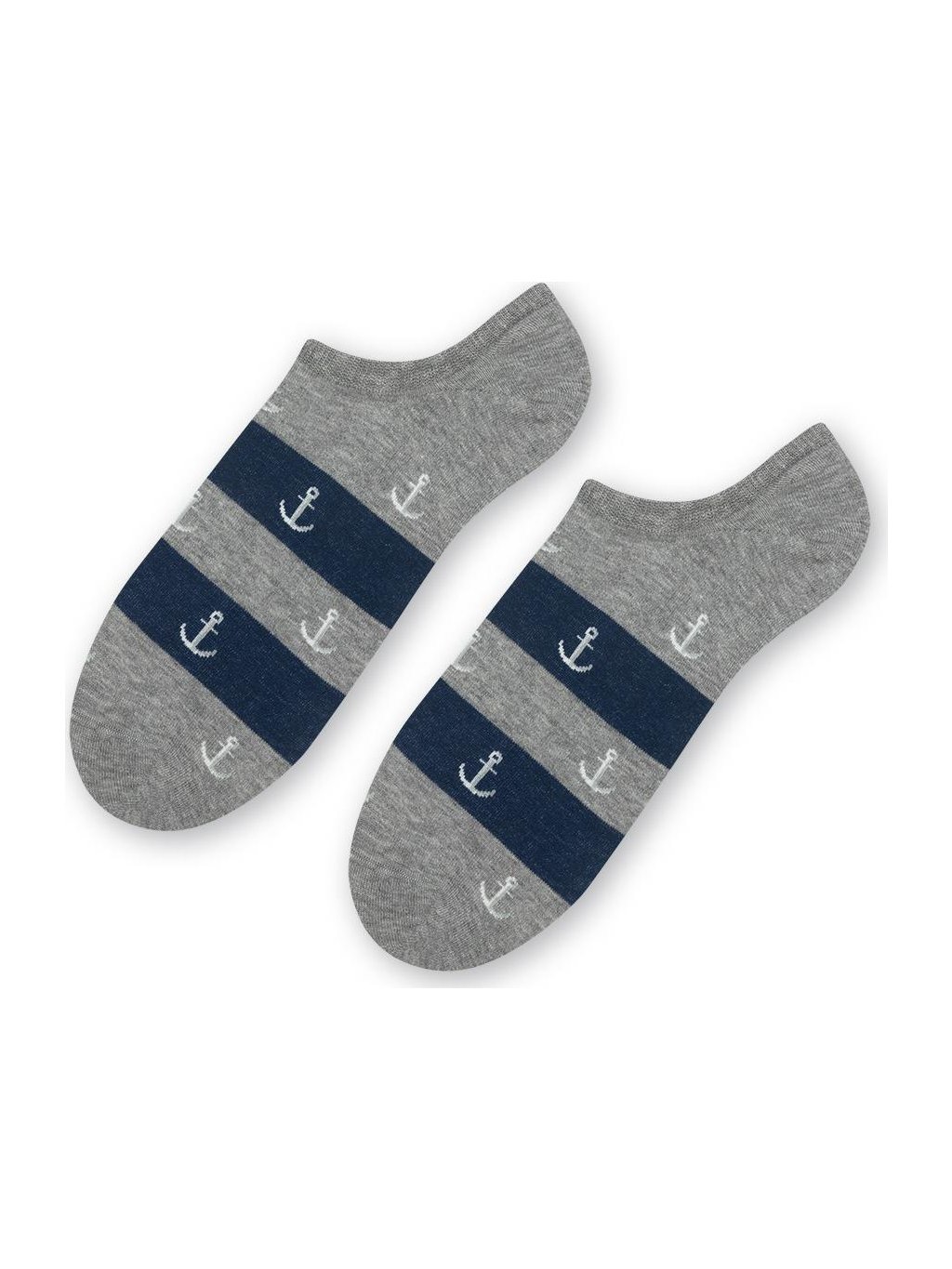 Sötétszürke unisex bokazokni csíkokkal és horgonyokkal Art.117