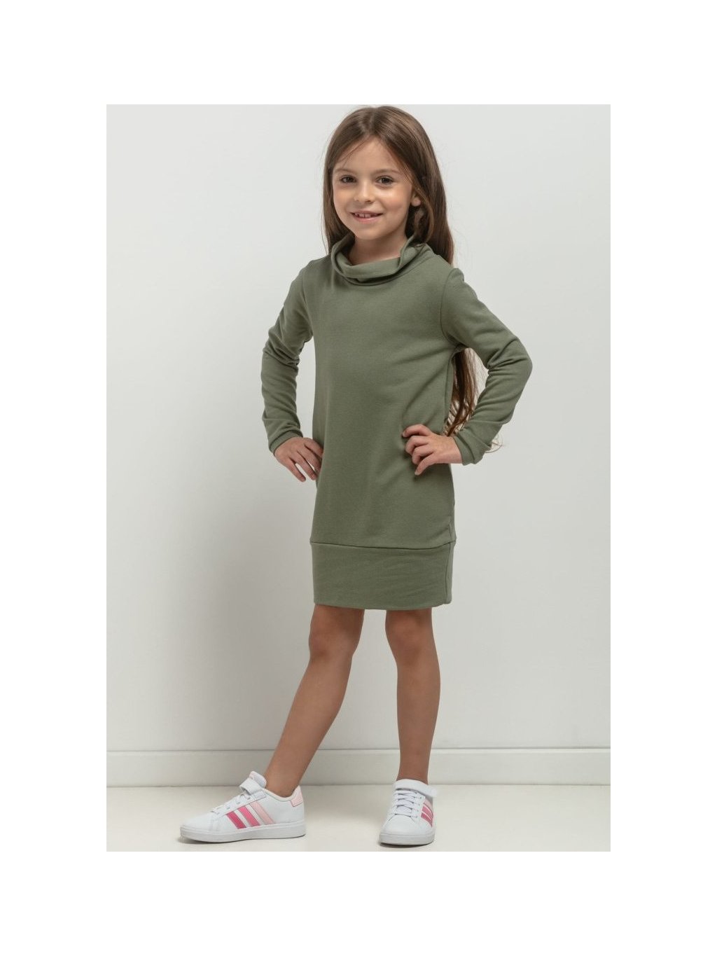 Sötétzöld anya és lánya pulóver lányoknak garbóval