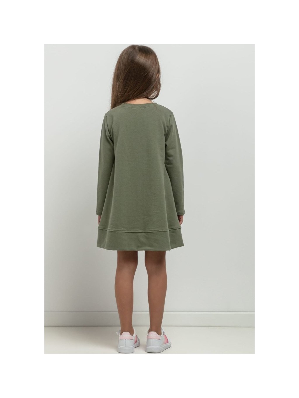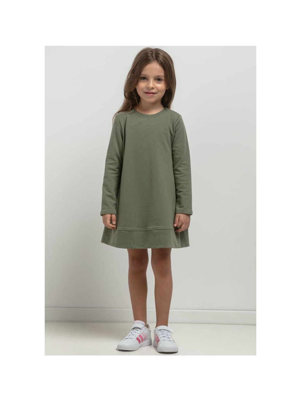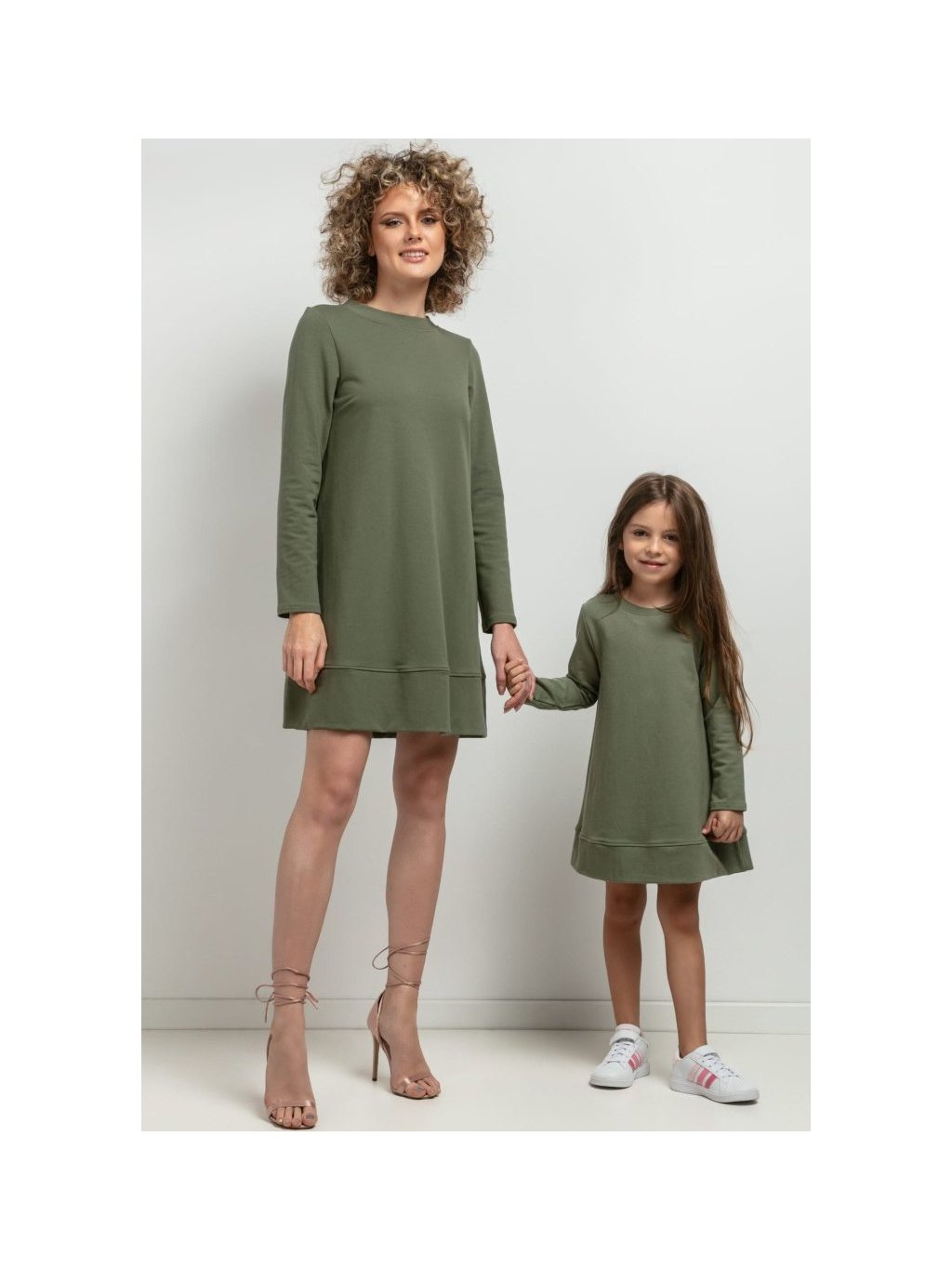 Sötétzöld anya és lánya ruha alsó részén díszredőzéssel