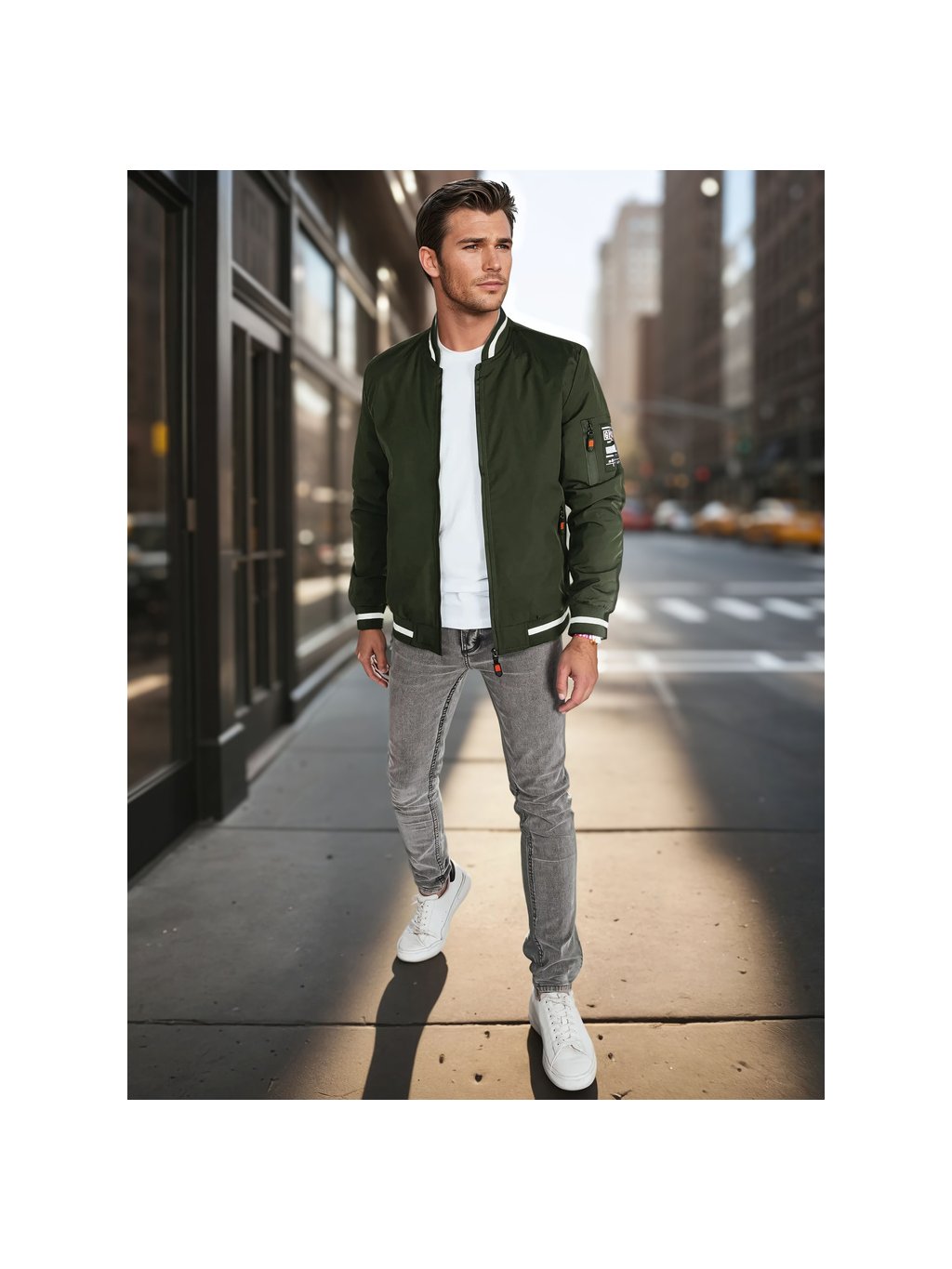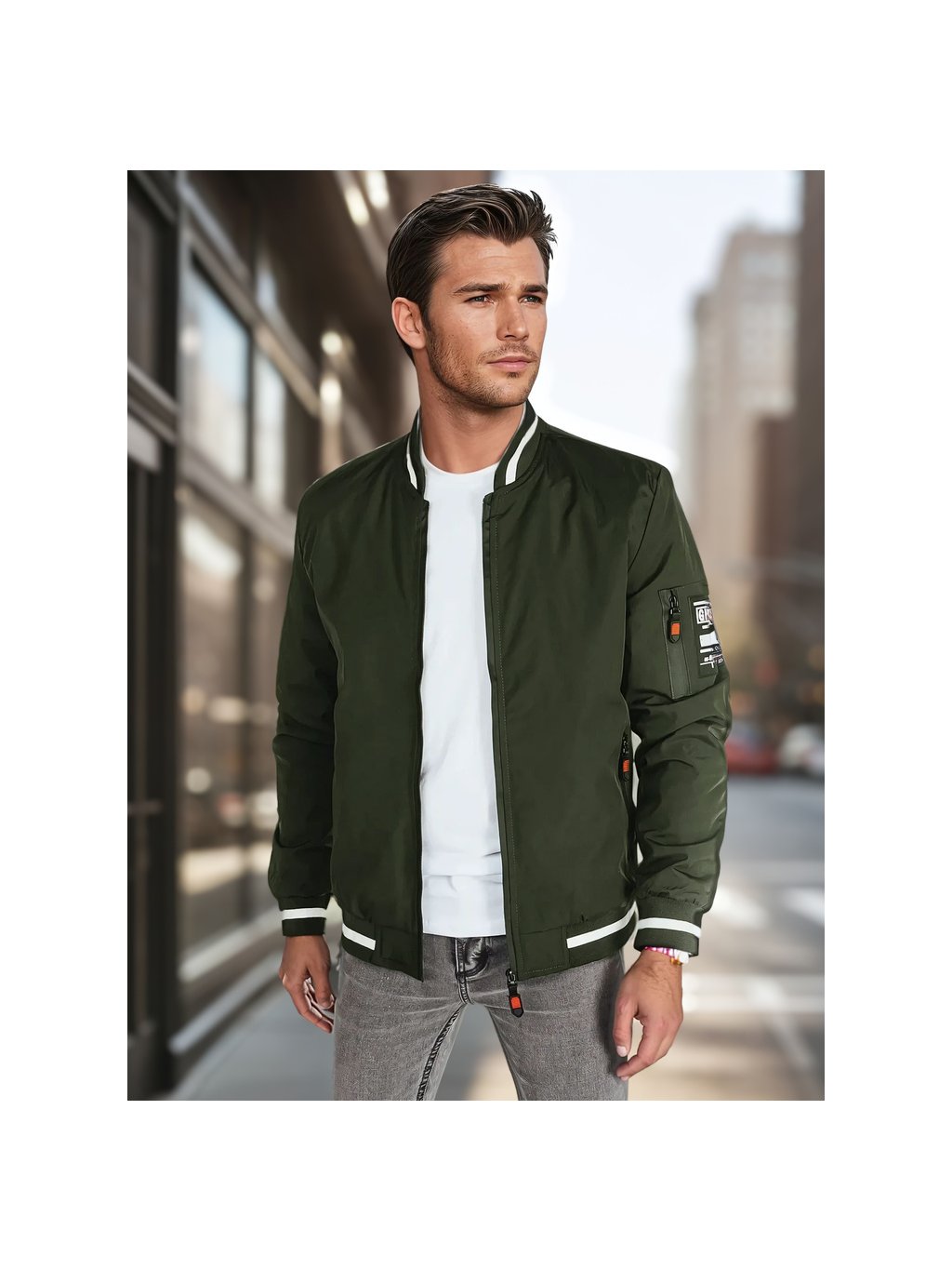 Sötétzöld férfi bomber dzseki kapucni nélkül