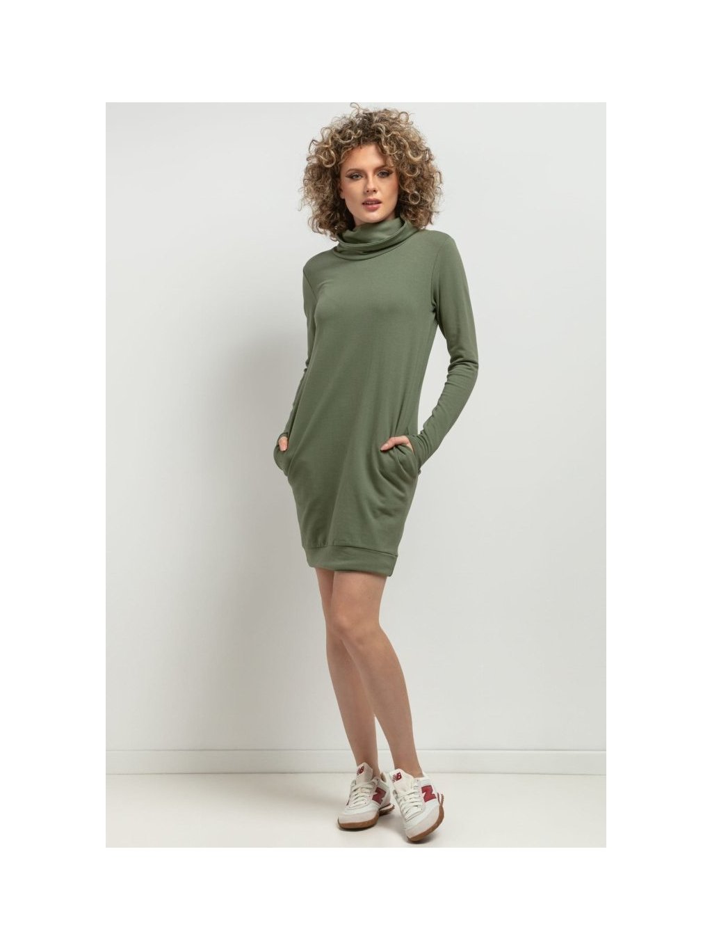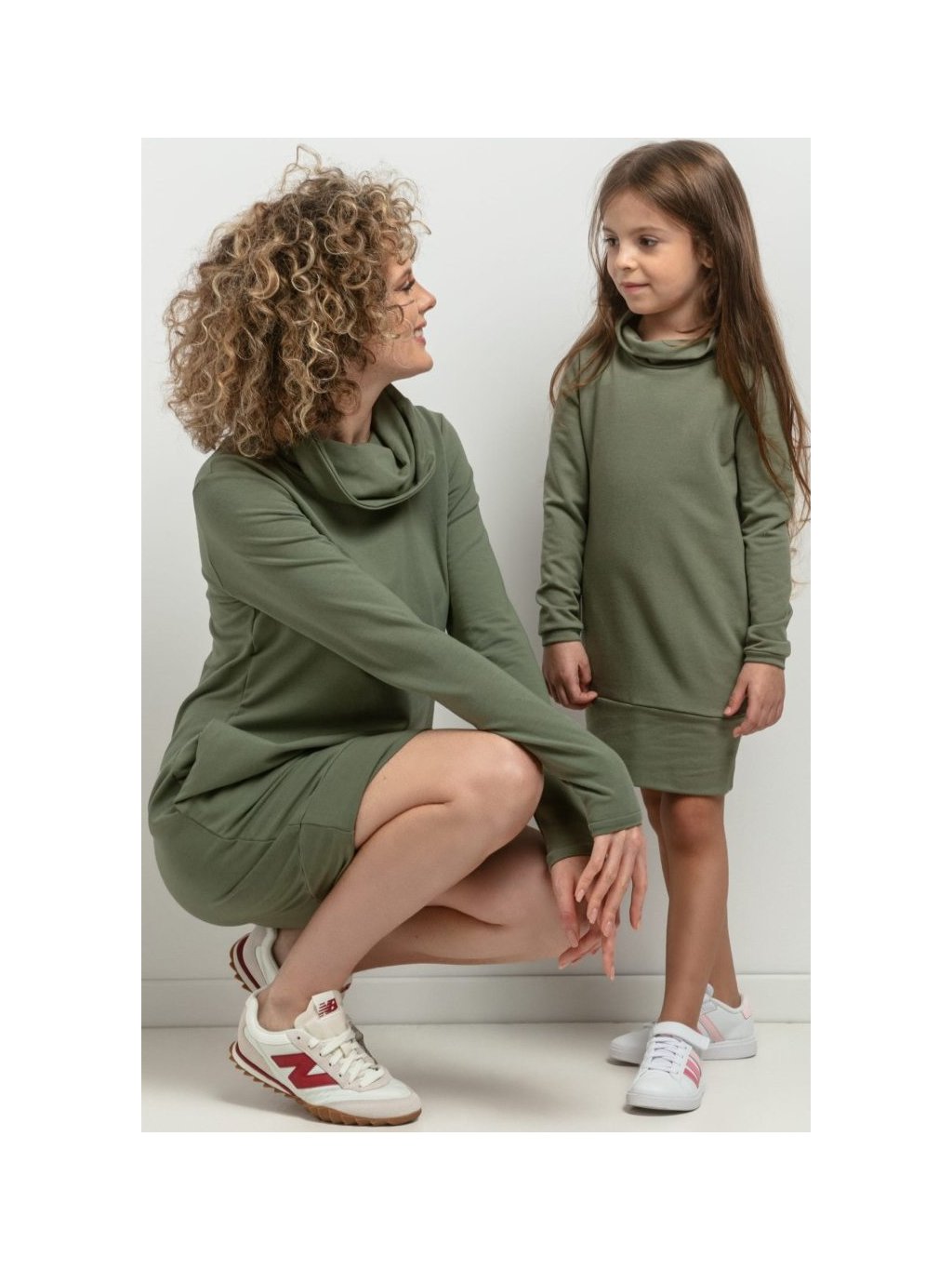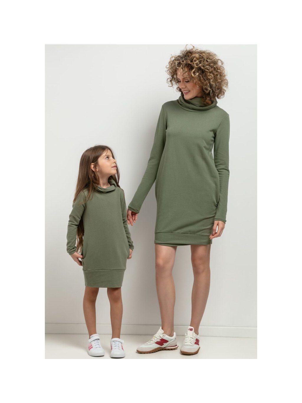 Sötétzöld női anya és lánya pulóver ruha garbóval