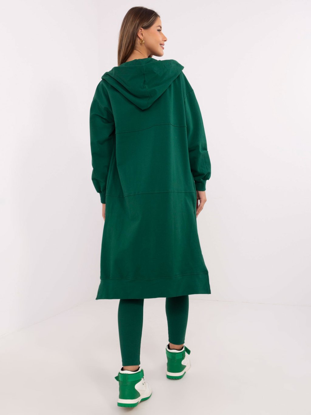 Sötétzöld női háromrészes szett cipzáras pulóverrel