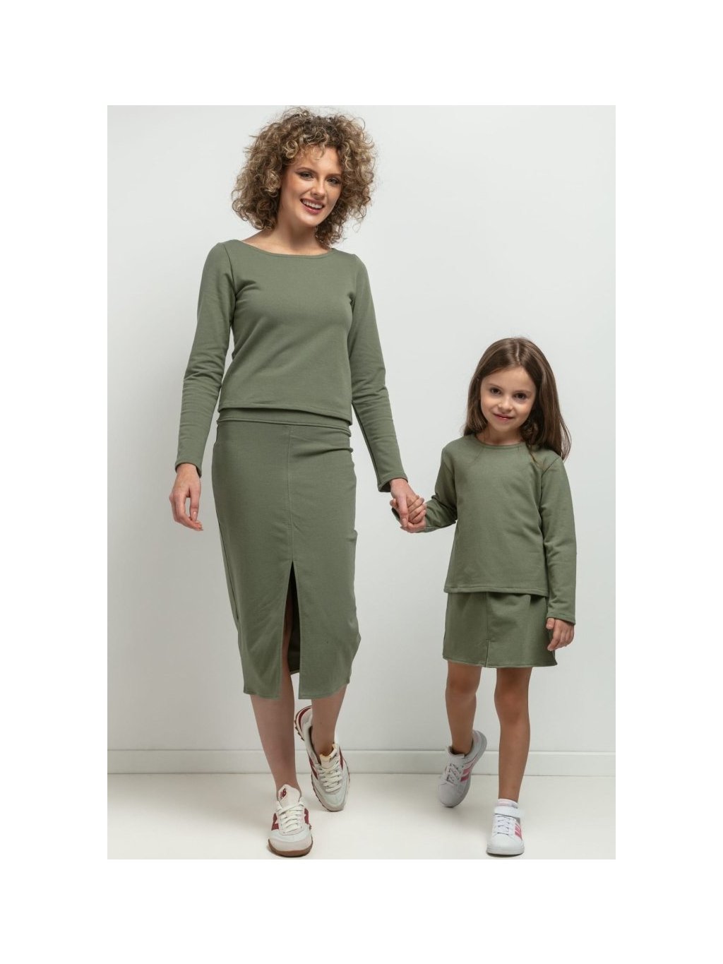 Sötétzöld női könnyű pulóver - anya és lánya