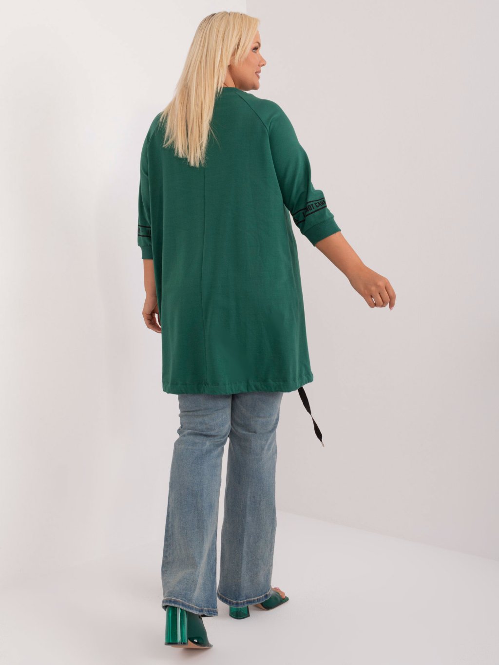 Sötétzöld pulóver tunika nyomtatással és 3/4-es ujjal