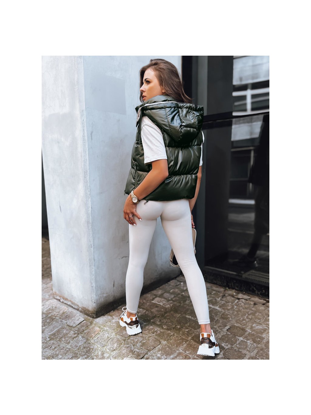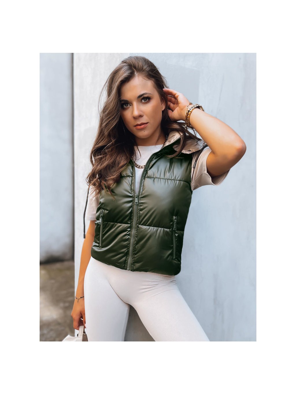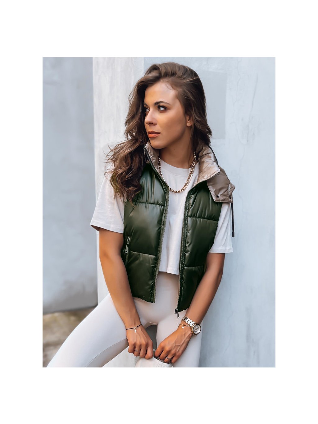 Sötétzöld rövid steppelt mellény OSHE