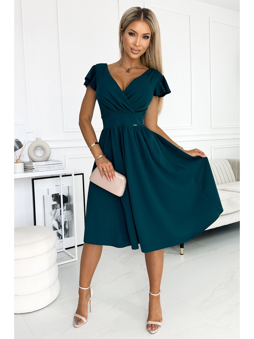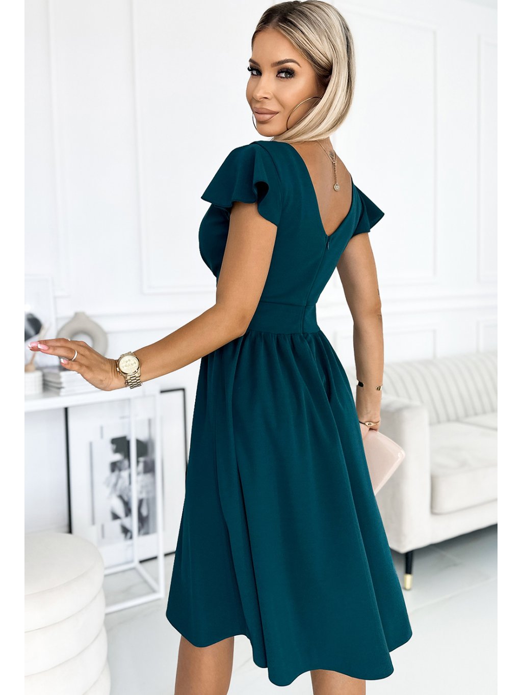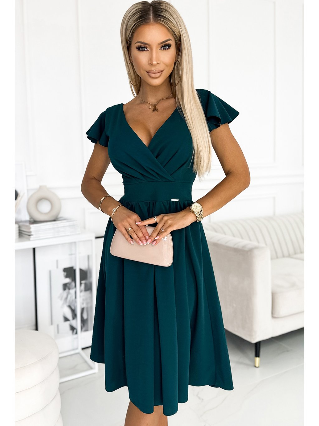 Sötétzöld ruha nyakkivágással és rövid ujjakkal MATYLDA