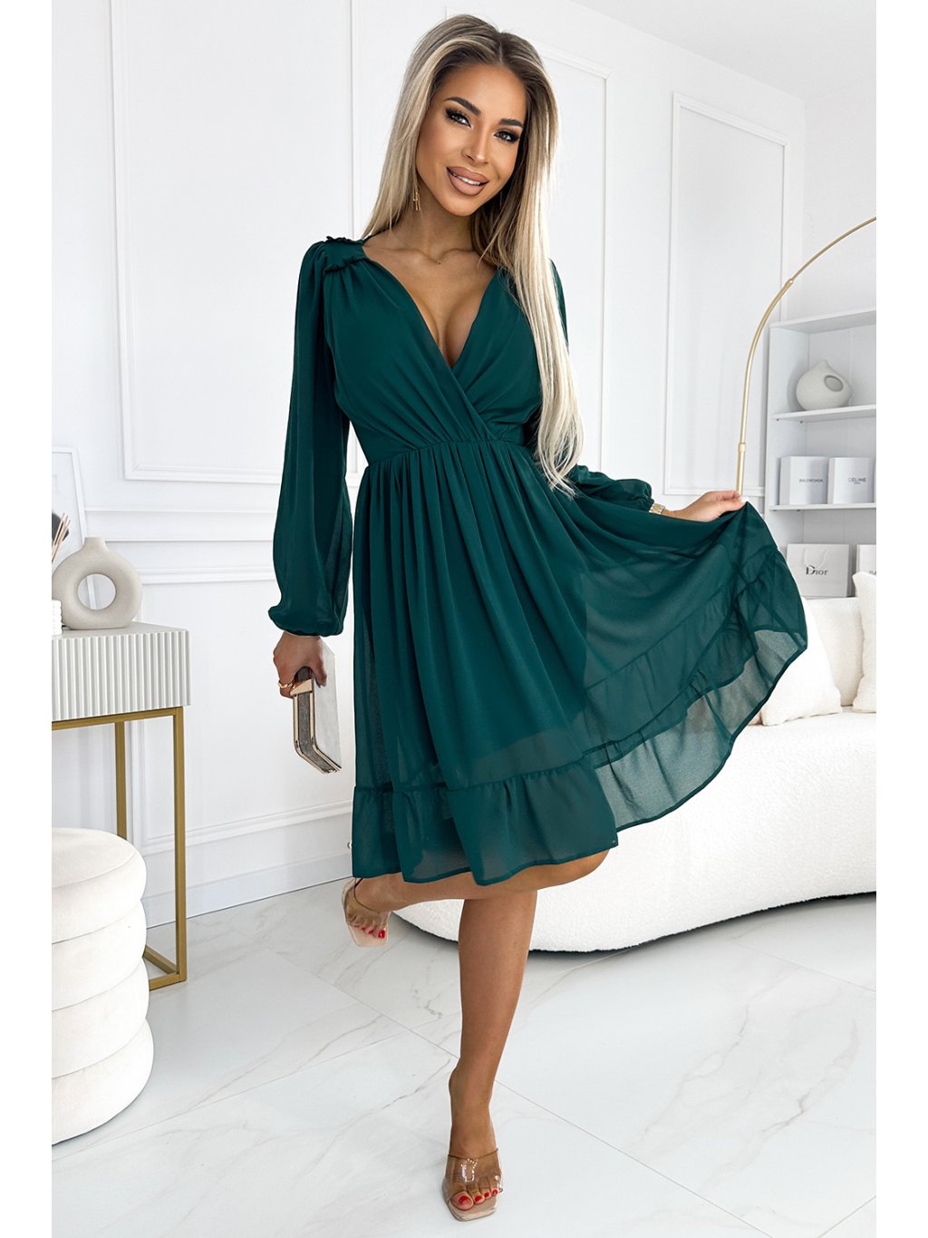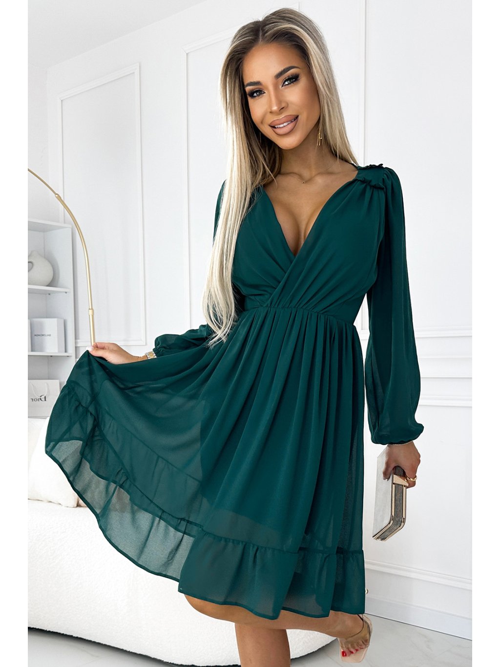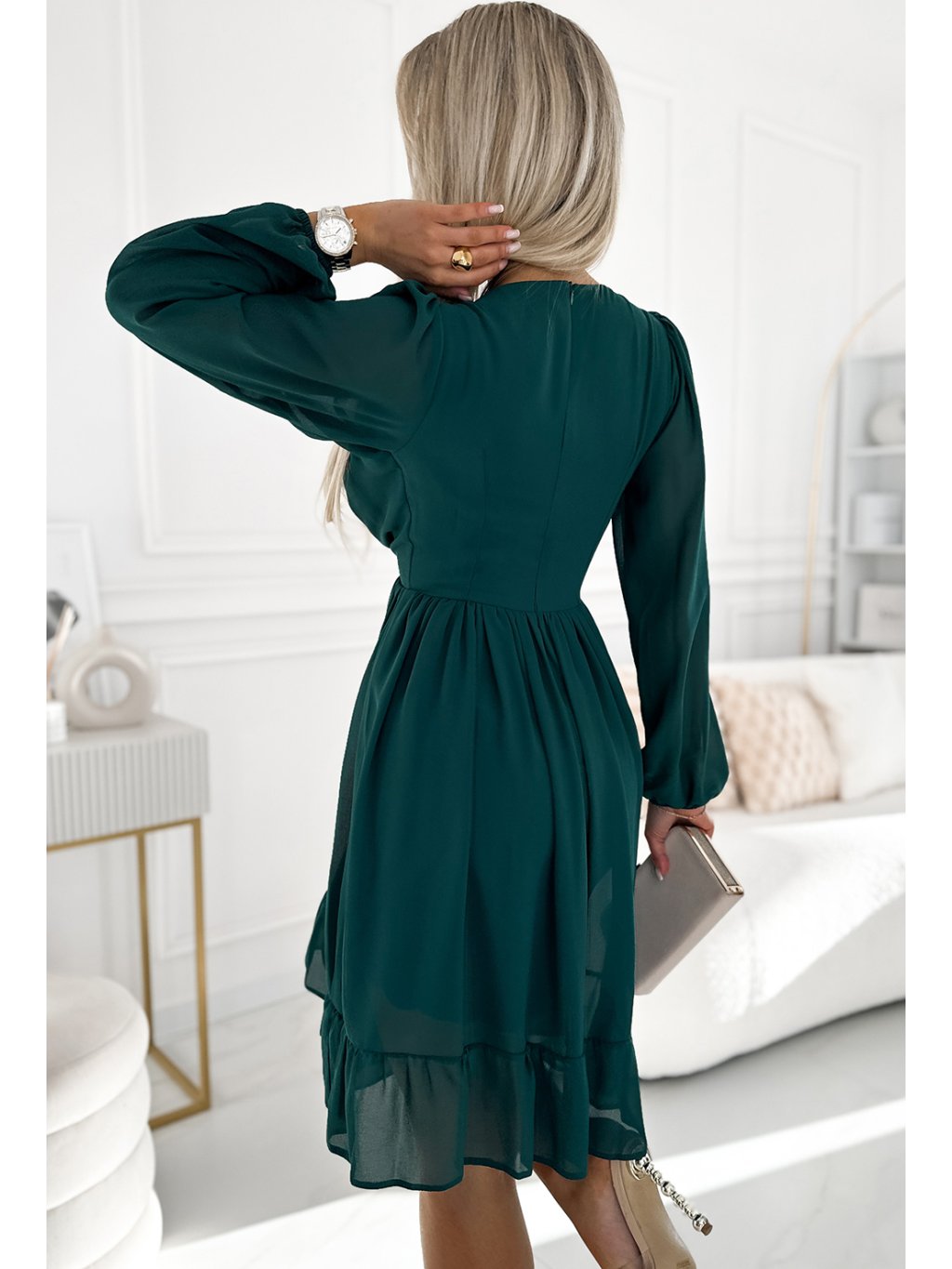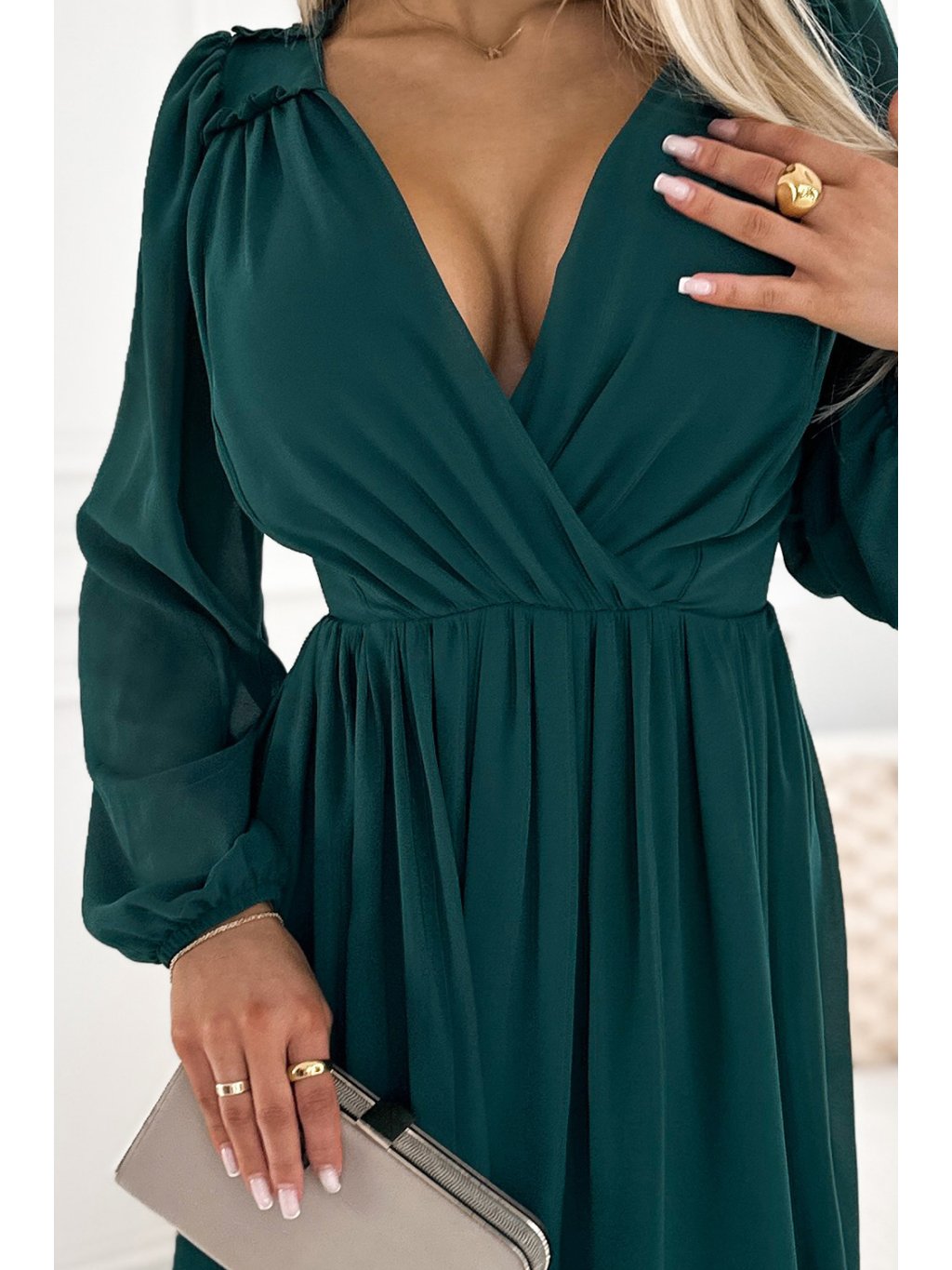 Sötétzöld sifon ruha MILA