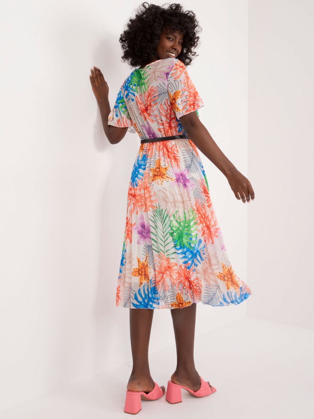 Színes mintás midi ruha övvel