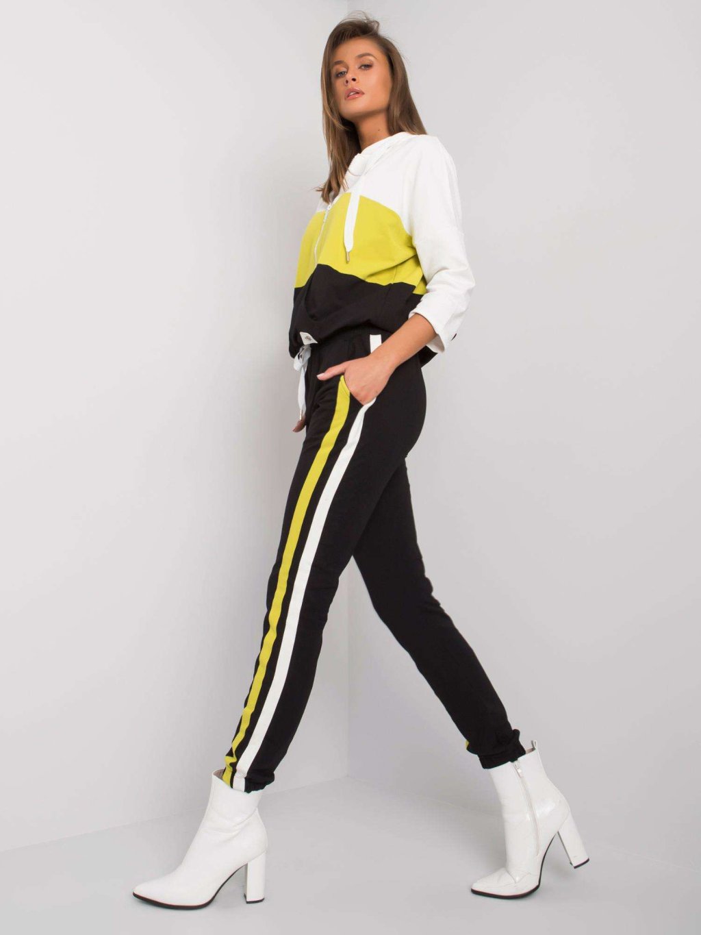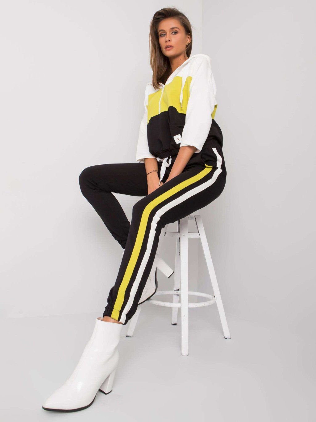 Színes pulóver és nadrág - krém / lime / fekete