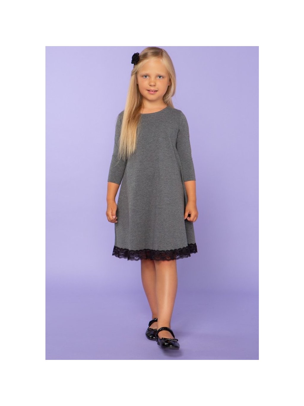 Szürke anya és lánya ruha alul csipkével