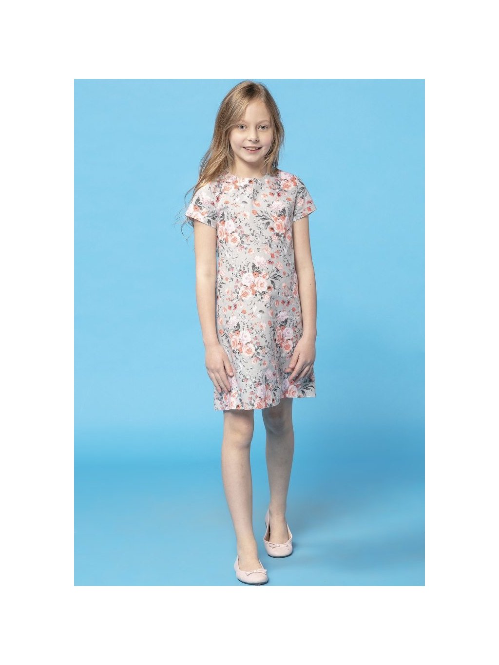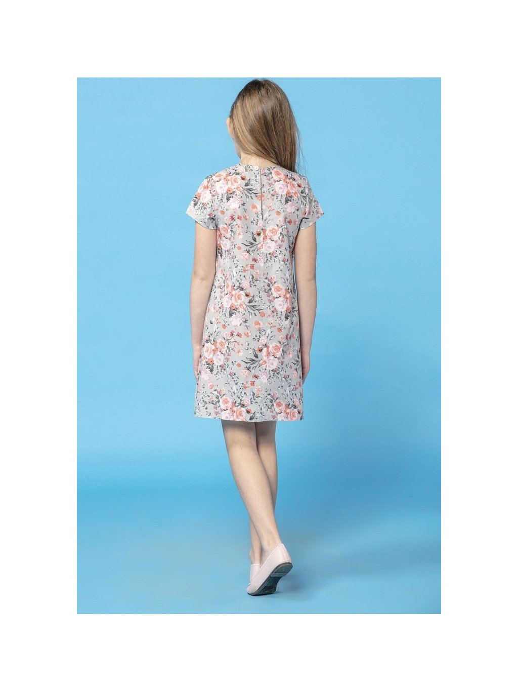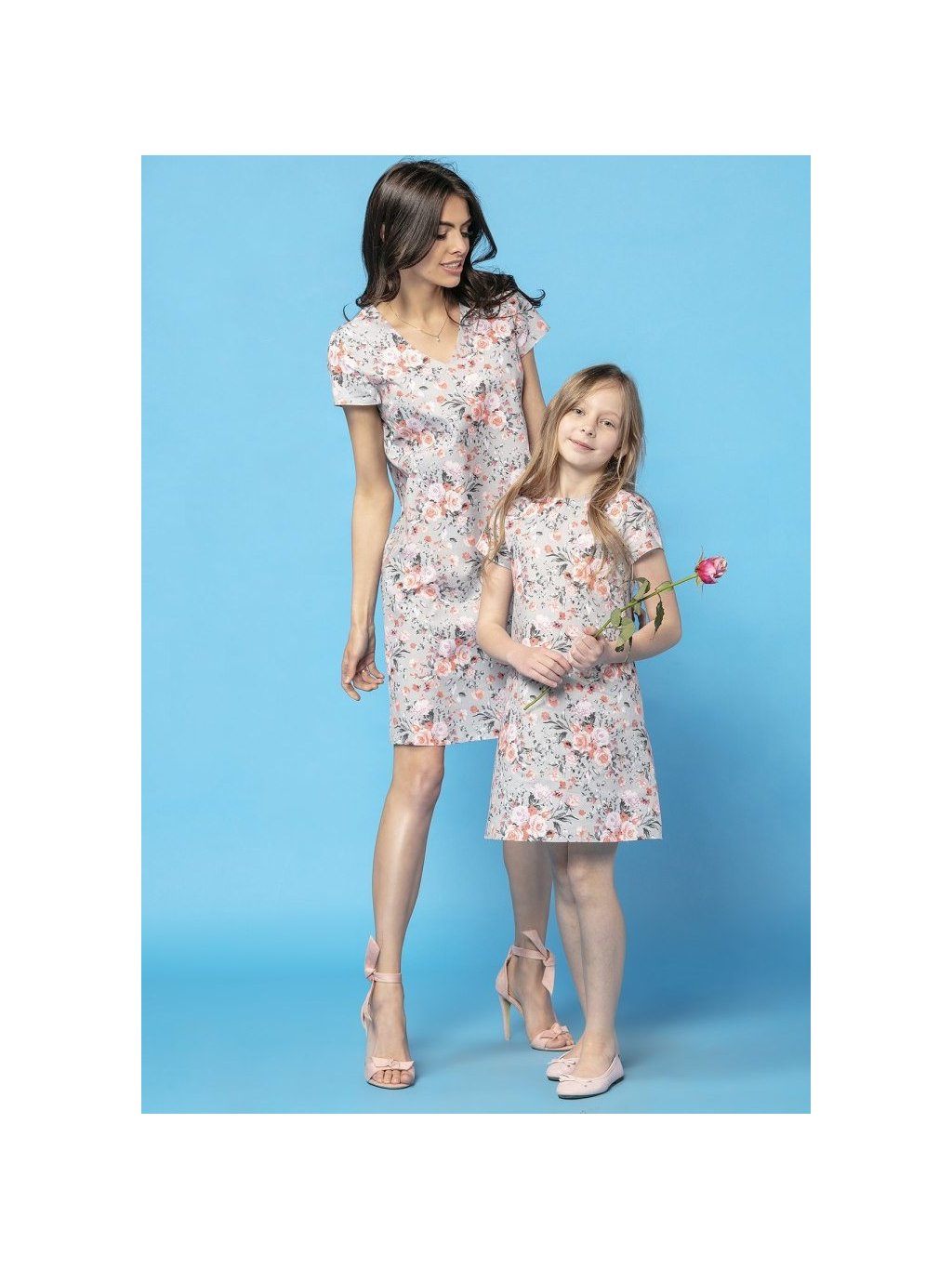 Szürke egyszerű anya és lánya ruha rózsa mintával, lánynak
