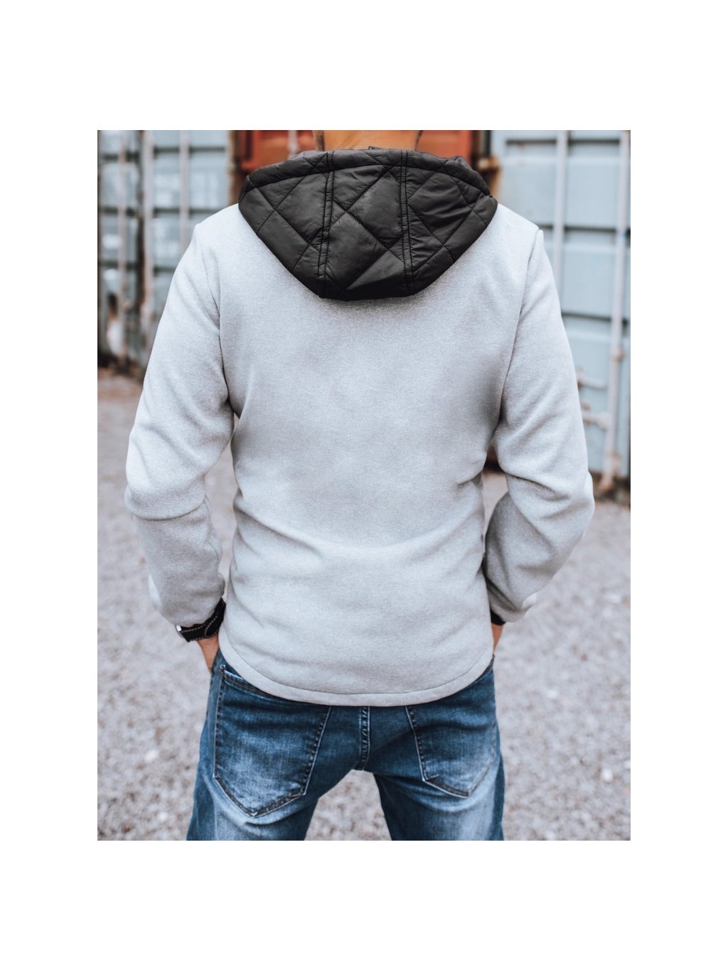 Szürke-fekete kabát pulóverszerű ujjal
